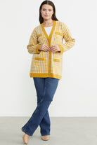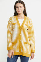 Kazayağı Motif Oversize Triko Ceket - Güneş