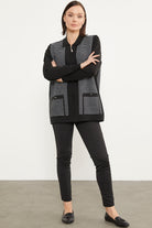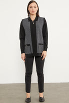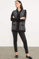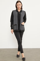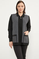 Polo Yaka Fermuarlı Triko Yelek - Siyah