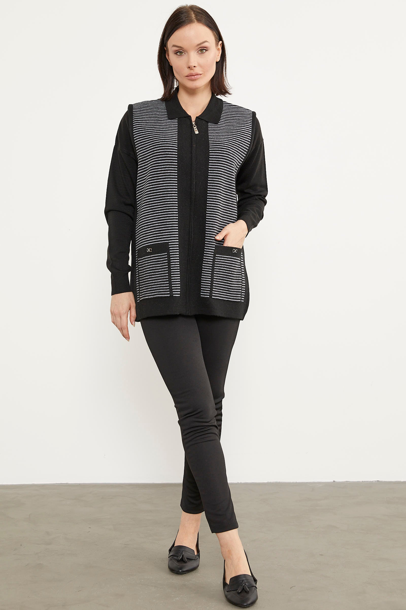 Tarzınıza göre seçebileceğiniz farklı renk seçeneklere sahip cep detaylı, çizgili, iki renkli, sıfır kol triko yelek boydan fermuarı ve yün dokusu ile kullanımlarınızda kolaylık sağlayacaktır.