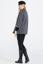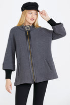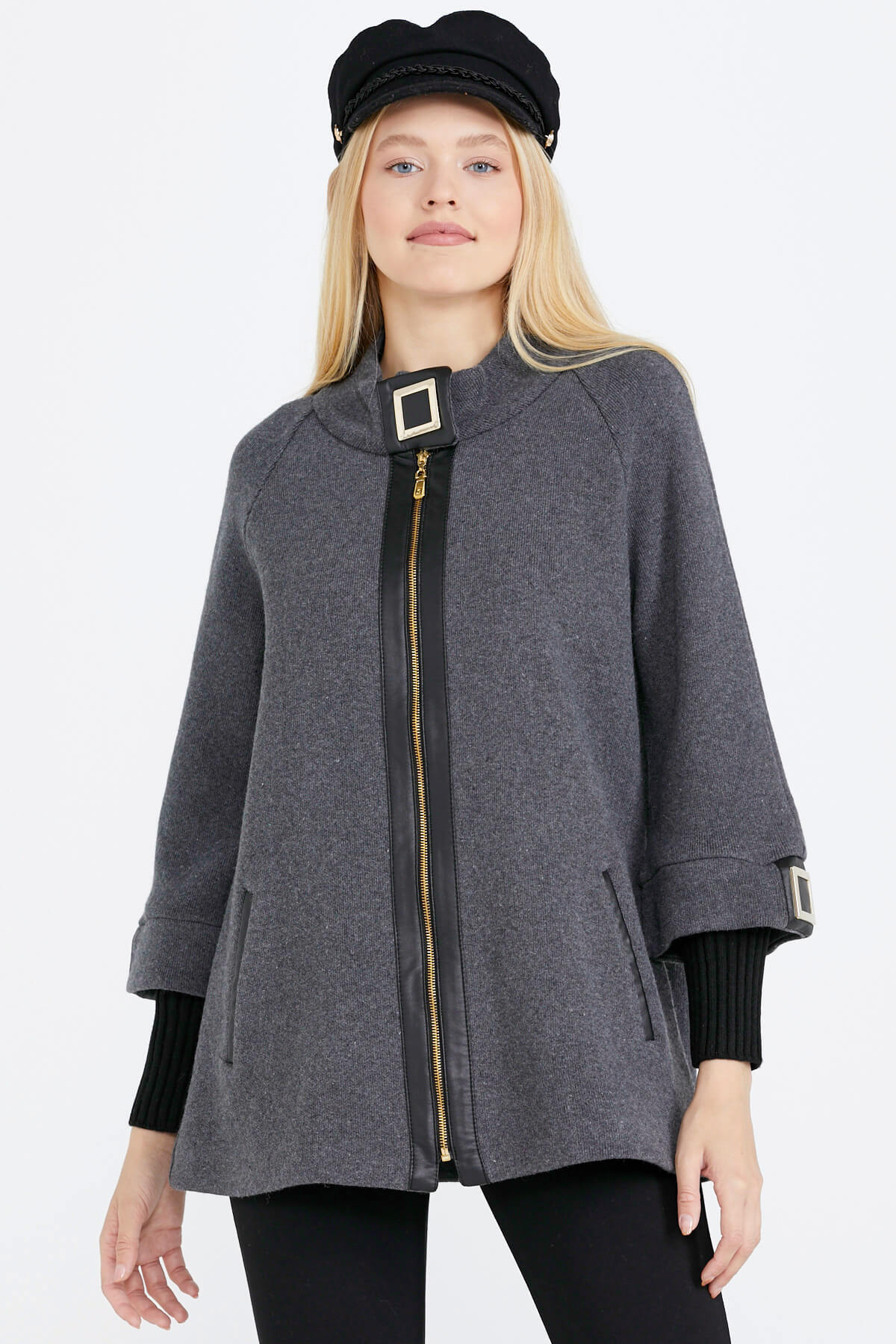Toka Detaylı Fermuarlı Kadın Triko Ceket - Koyu Gri - Siyah