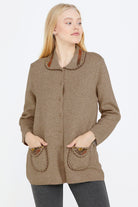 Bebe Yaka Nakışlı Kadın Triko Ceket - Vizon