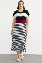 Çizgili Marine Düşük Omuzlu Penye Elbise - Siyah