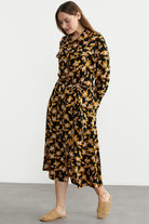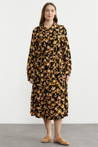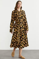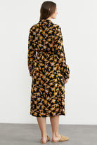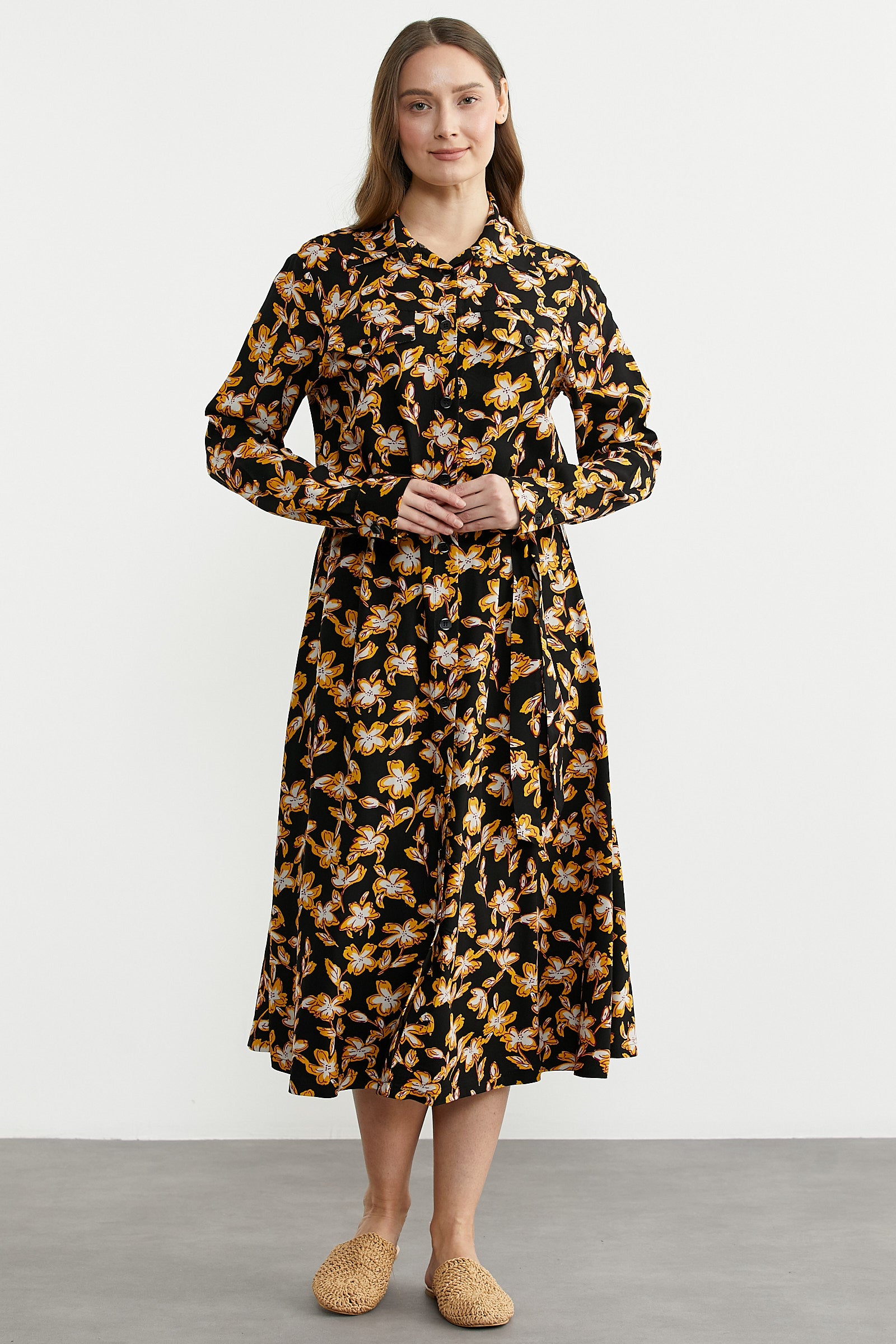 Desenli Uzun Kol Viskon Gömlek Elbise - Siyah