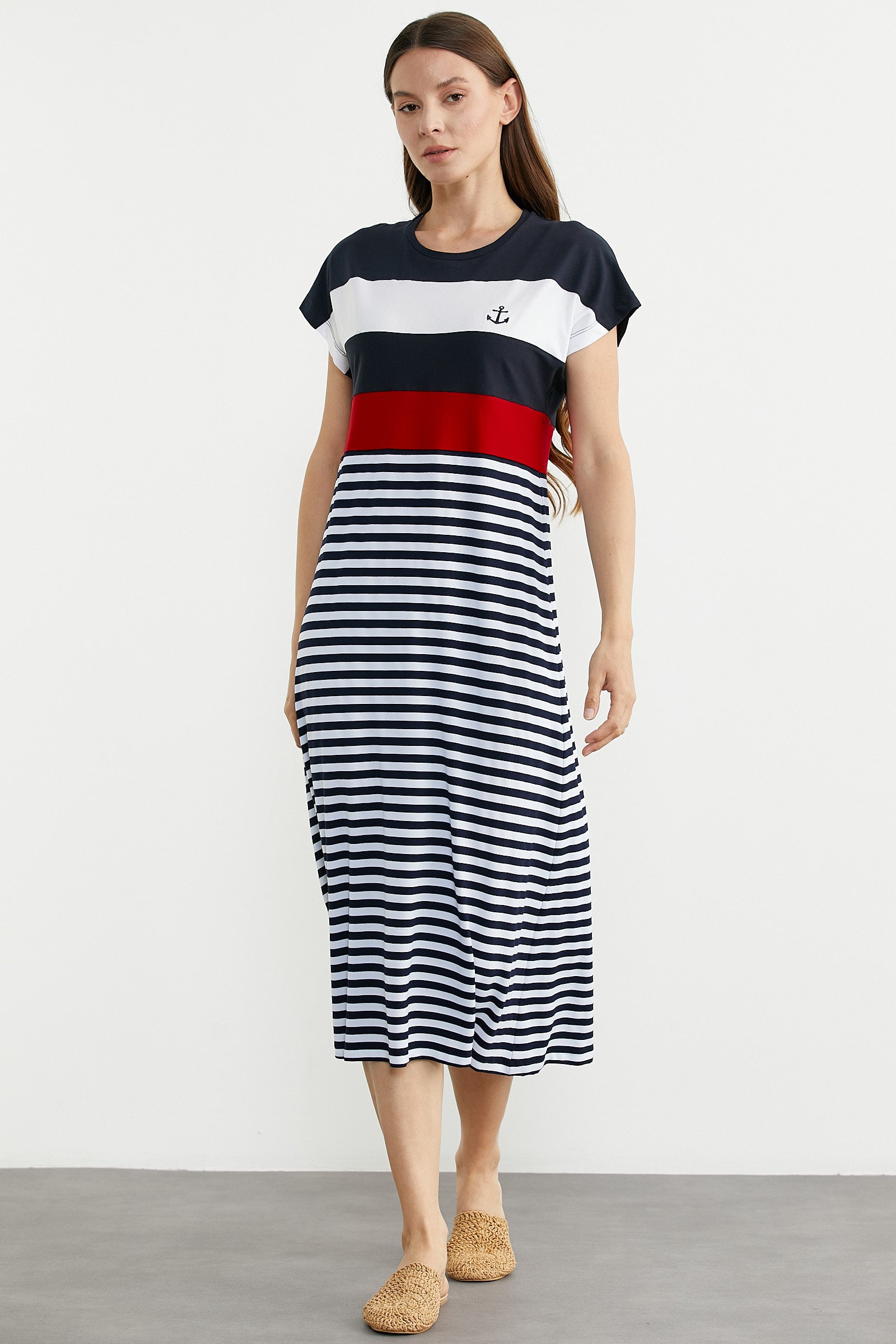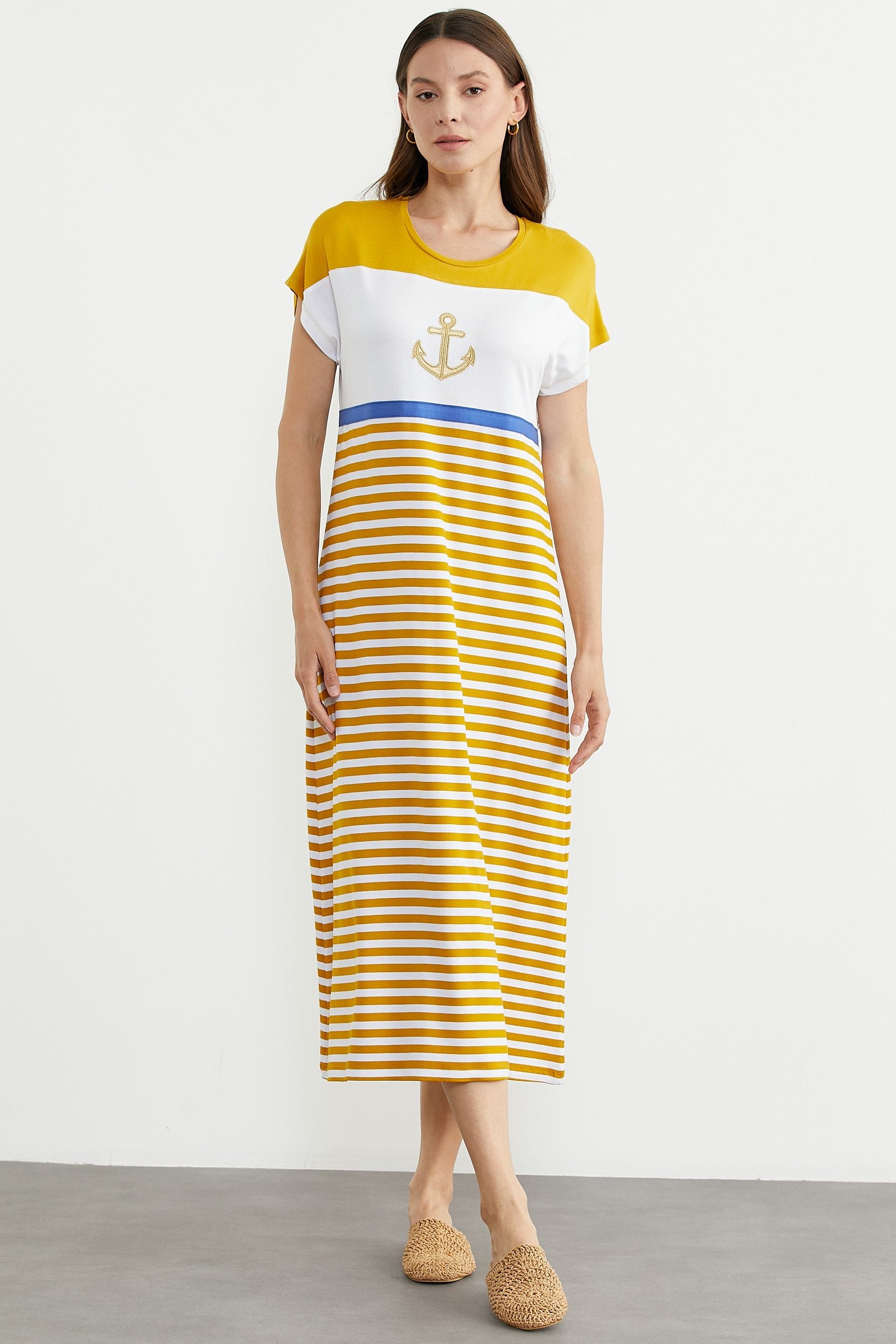 Yaz aylarında tercih edilen yahut genel olarak gündelik elbiseler arasında kendini gösteren modellerde, rahatlık ön planda oluyor. Bu nedenle truvakar kol, pencere kol ya da torba kesim elbiseler ile rahat kesim kadın çiçekli elbise modelleri tercihlerin başında geliyor. Tabi burada geniş yaka marine elbiseleri ve kapüşonlu elbise modellerini de hatırlamak gerekiyor. Aynı zamanda düz renklerin sadeliğinden vazgeçemeyenler için bu basic stili yatay ya da dikey çizgiler hareketlendiriyor. Sementa’nın farklı mevsimlere uygun olarak tasalanan modelleri, kadın günlük elbise çatısı altında toparlanabilecek onlarca seçenek de barındırıyor.