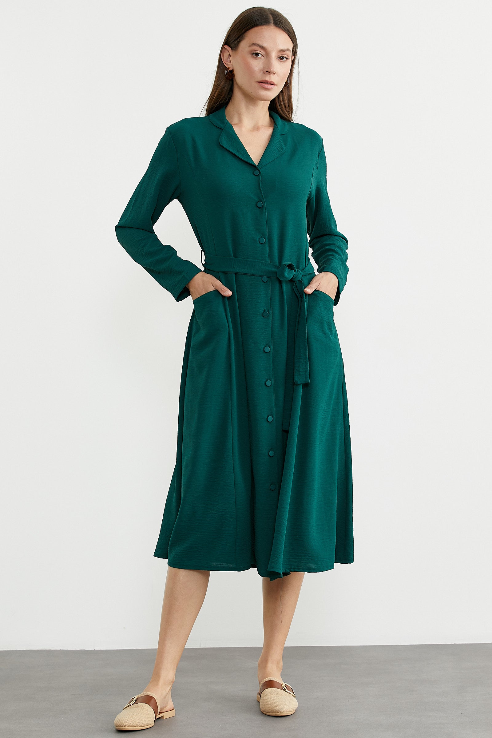 Bir denge kurmak ilk bakışta zor görünebilir. Şık elbise seçimleri yaparken daima kendi beklentilerinin yanına modanın gereklerini de koyan kadınlar biliyor ki, düğmeli elbise modelleri veya bir fermuarla kolay bir biçimde hareketli hale getirilen tasarımlar son derece basit ve etkili çözümlere ulaşılmasını sağlıyor. Şıklığa ilişkin tüm beklentileri de fazlasıyla karşılıyorlar.