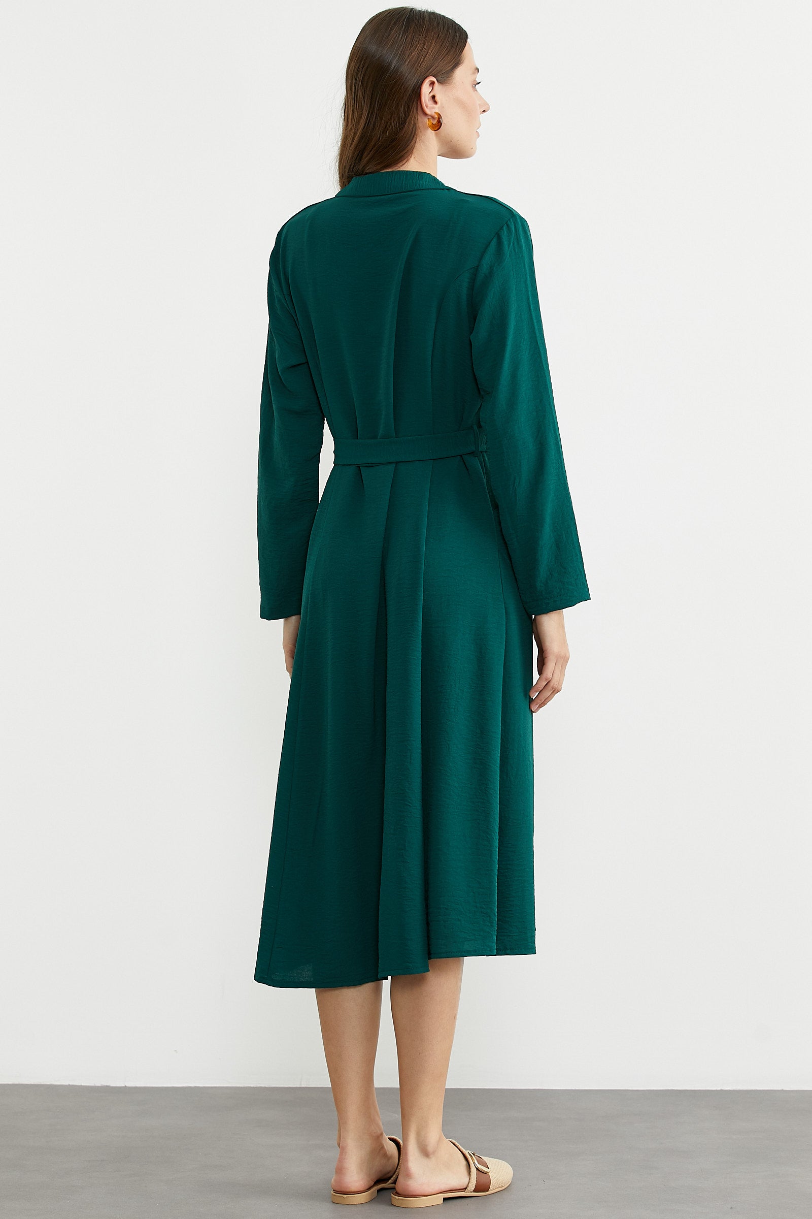 İş yerlerinde giyilmek üzere tercih edilen şık elbise modelleri, kimi zaman şık bir kemerli detayla, kimi zaman ise omuz yahut yakalara işlenen taş ve pullarla hareketlendiriliyor. Bu hareketlilik, elbisenin üzerine giyilecek olan kaban seçimlerinde, kadınların belirli bir dengeyi gözetmesine göre seçiliyor.