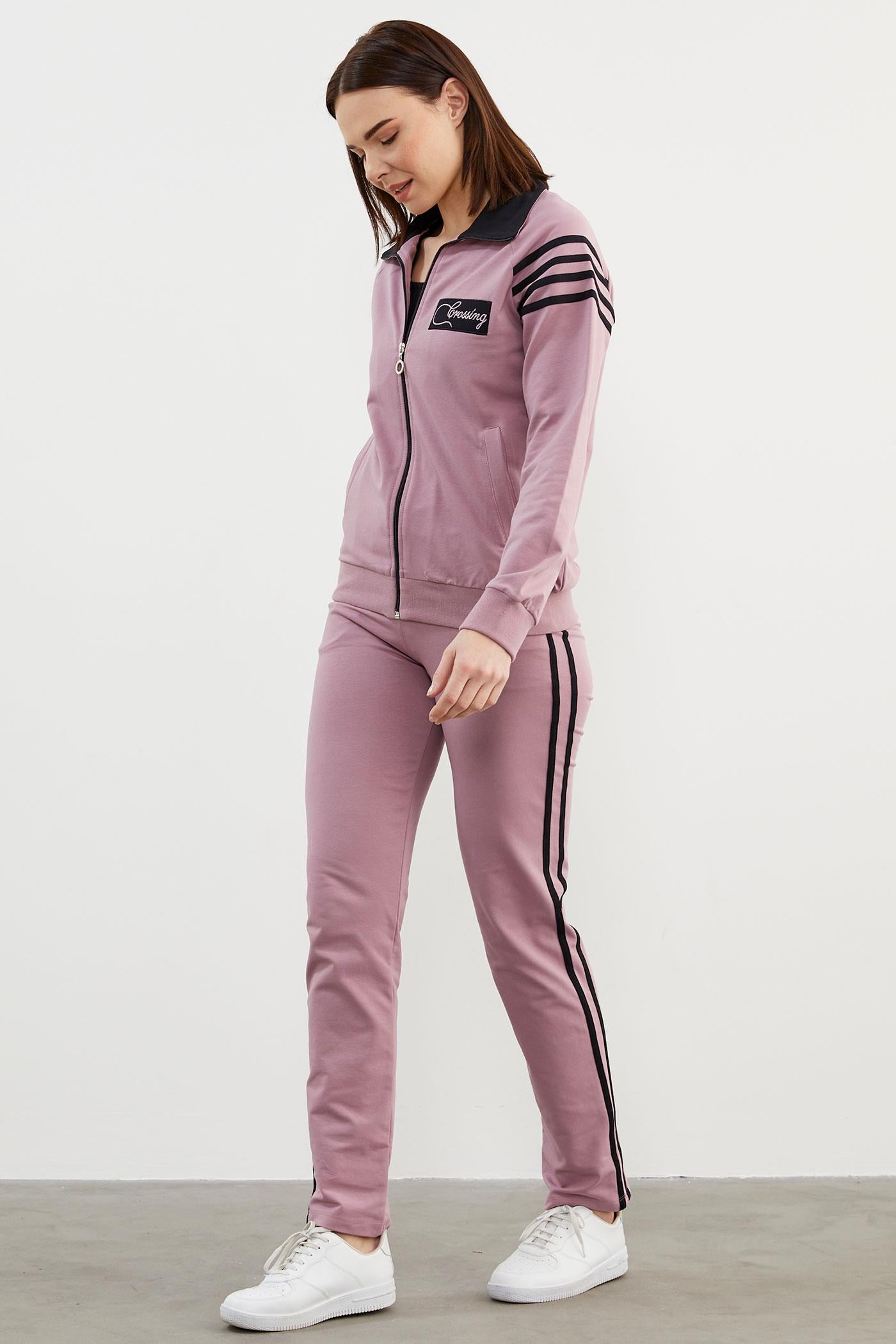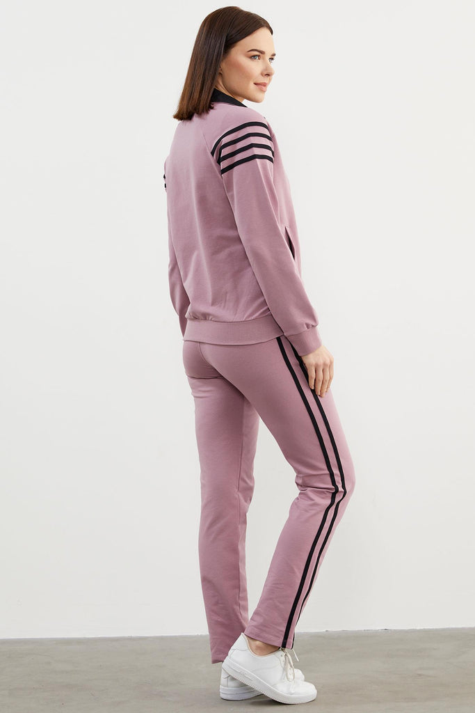 Çizgi Detaylı Dik Yaka Eşofman Takım - Lila