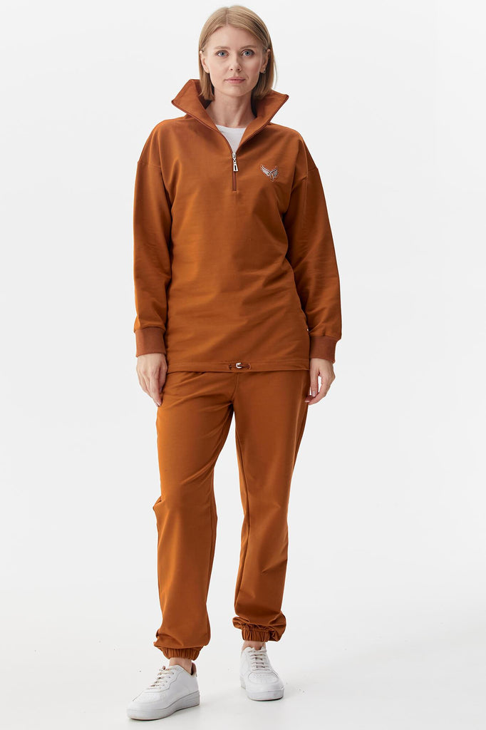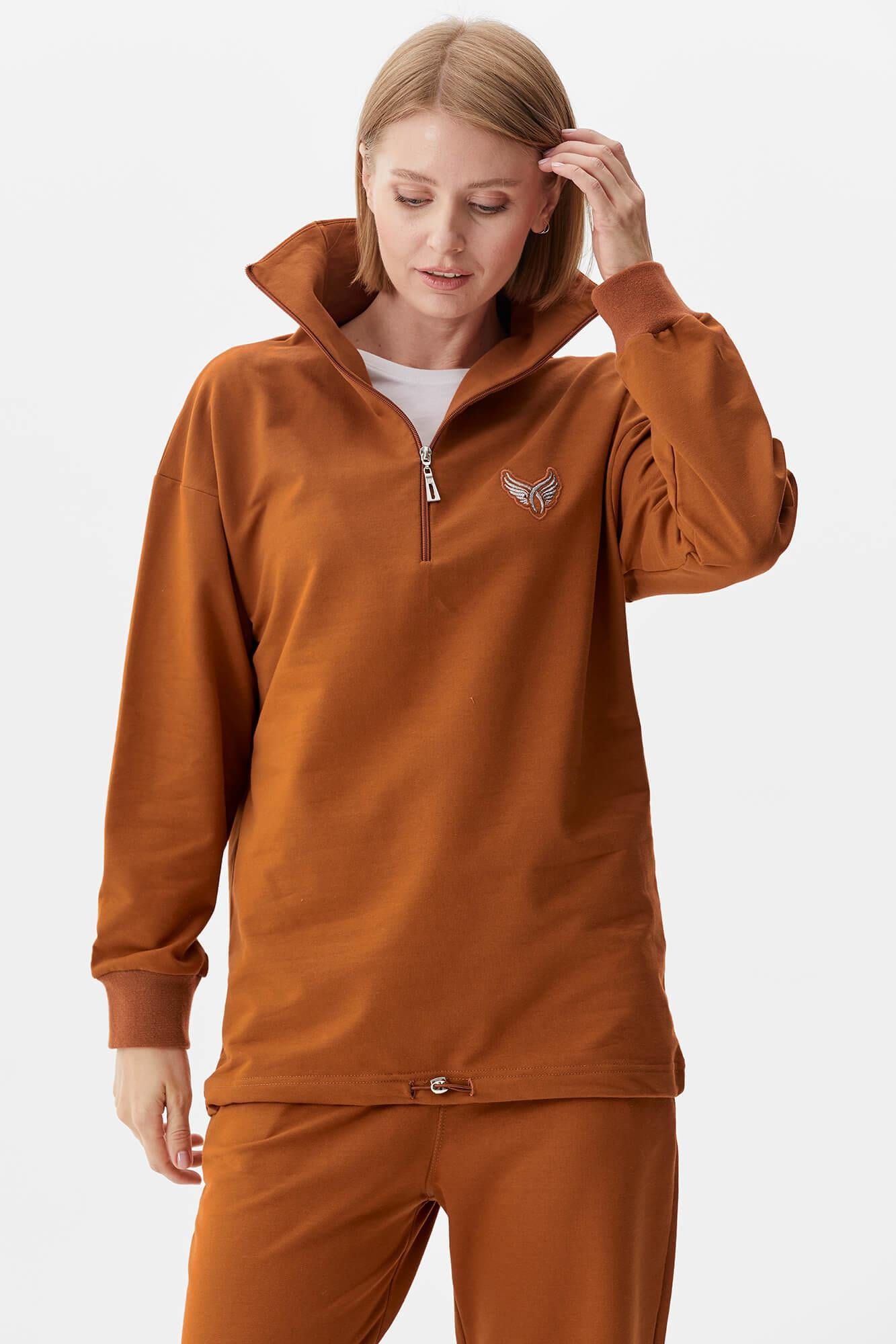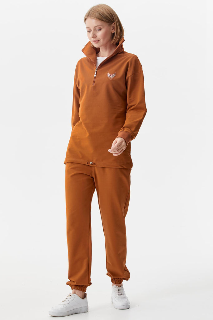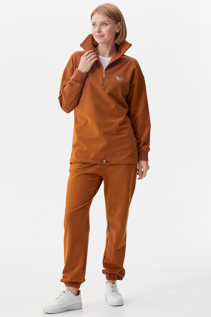 Dik Yaka Yarım Fermuarlı Eşofman Takım - Tarçın
