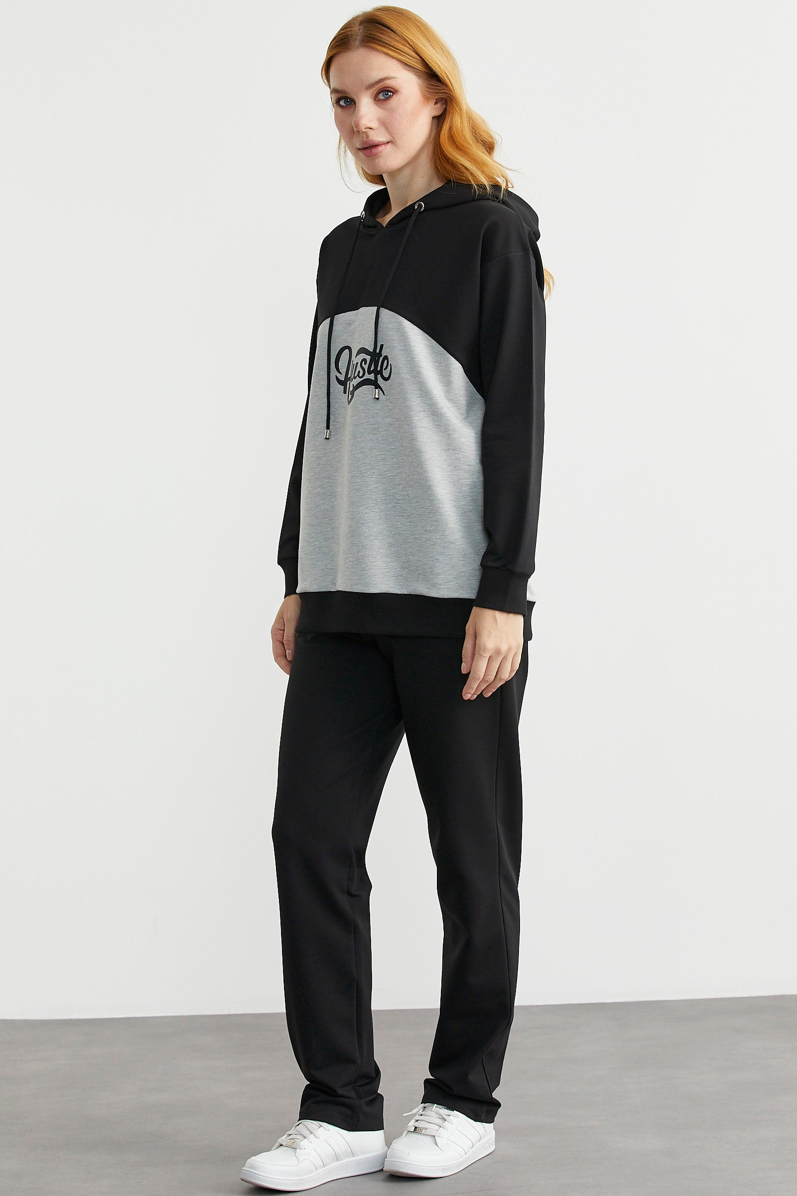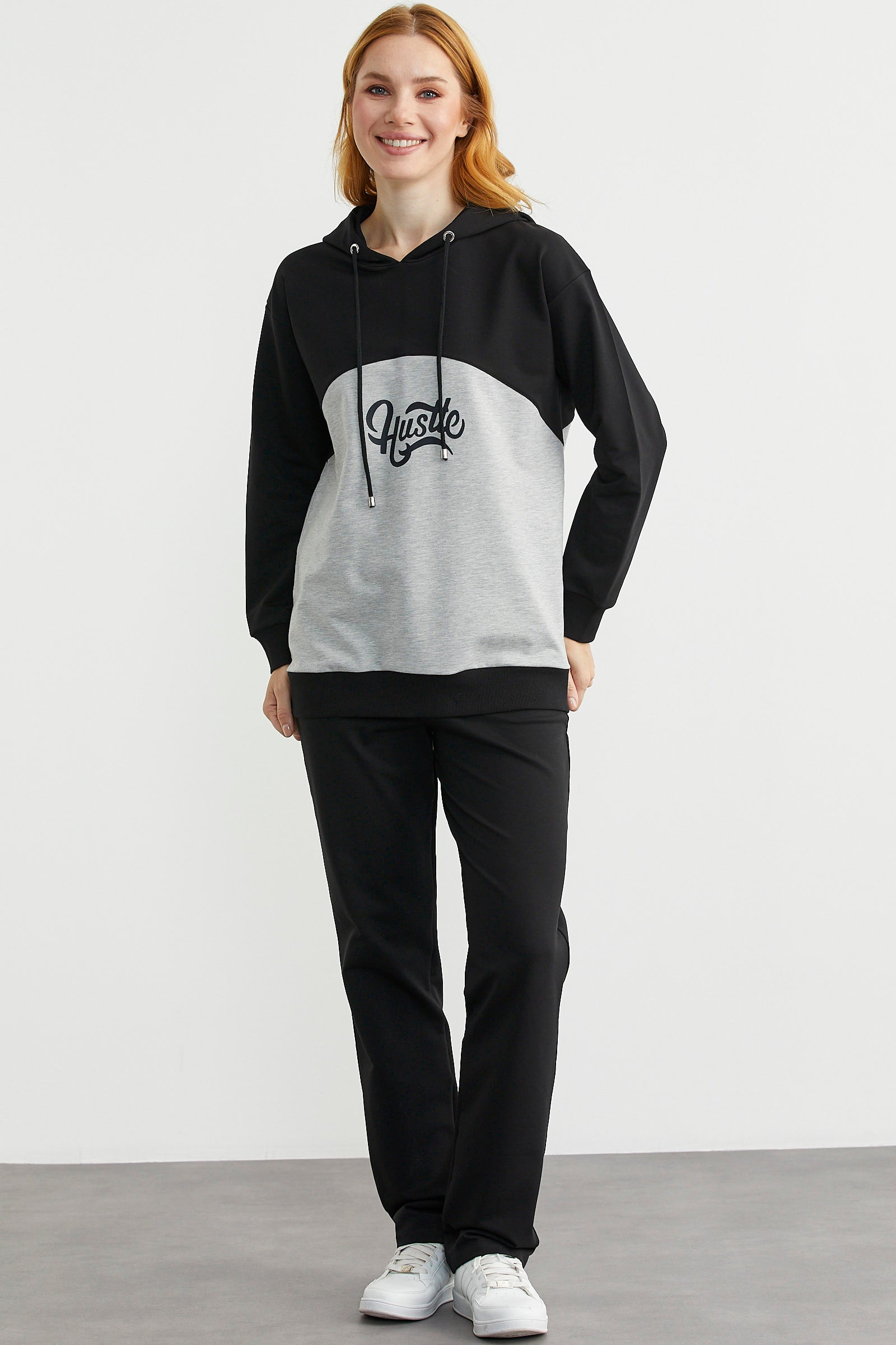 Oversize Kapüşonlu Eşofman Takım - Siyah