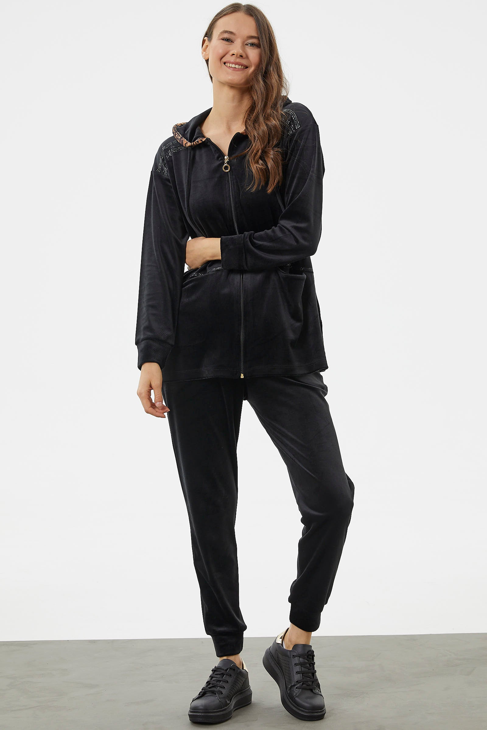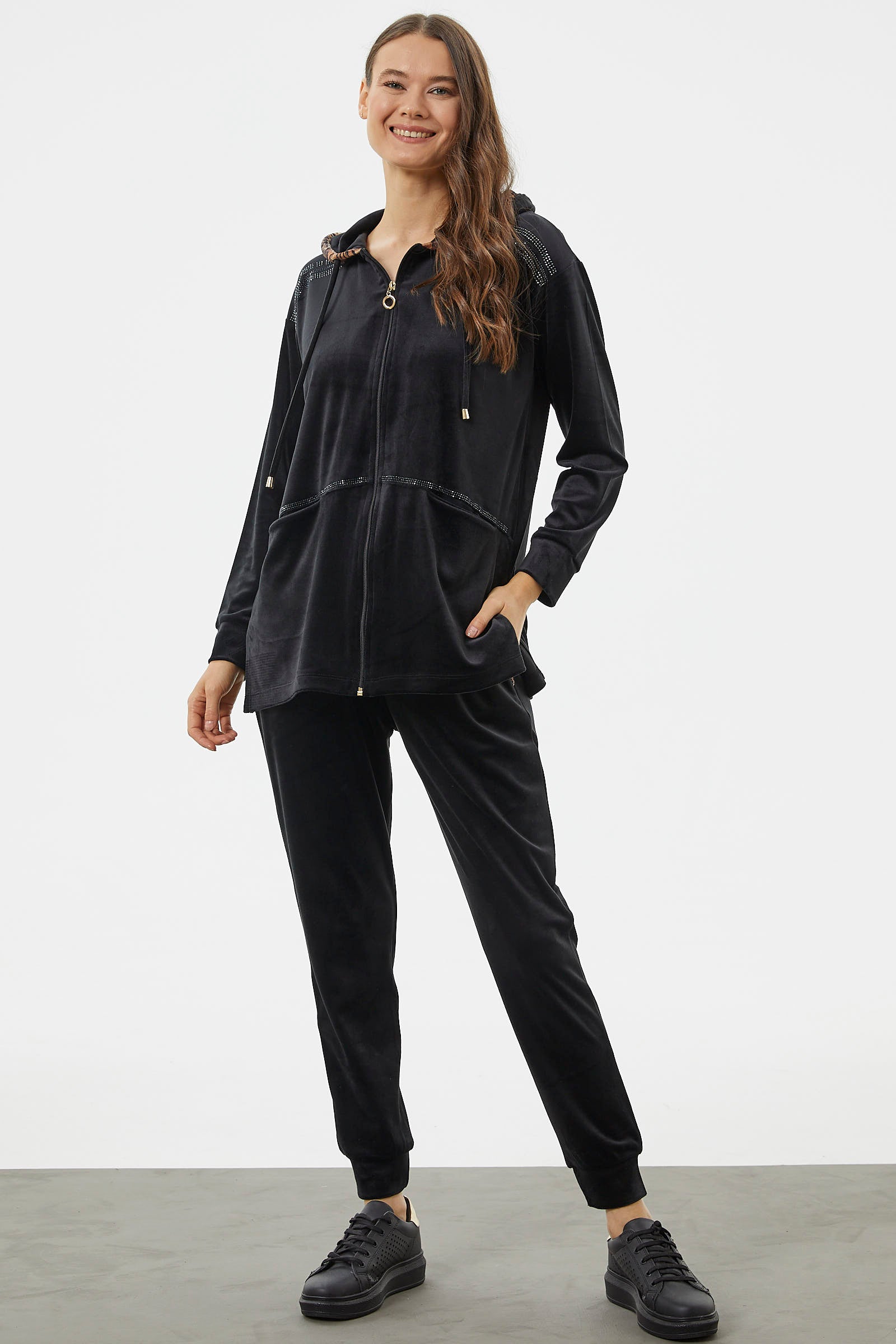 Rahatını, yaptığı klasik seçimlerle sağlamak isteyen pek çok kadın, fermuarlı kadın eşofman takımı seçenekleri ile özellikle gri kadın eşofman modellerine odaklanıyor. Bunun yanında yine klasik seçimler arasında olan, kadın siyah eşofman altı ile beyaz üst kombini yahut kadın beyaz eşofman altı ile siyah üst kombini her mevsim eşofman seçimlerinde öne çıkıyor. Seçtiği eşofman ile rahatlıkla beraber, şık ve çarpıcı bir görünüme sahip olmak isteyen kadınlar farklı renk ve kumaşlara yöneliyorlar. Örneğin Sementa’nın ürünleri içerisinde yer alan dik yaka parlak gri kadife kadın eşofman takımı, son dönemin ilgi çeken modellerinden biri! Ayrıca modellerin çoğunda, hemen her kadın cepli eşofman takım ile anahtarlık, telefon gibi ufak eşyalarını koyabileceği tasarımlara ilgi gösterdiğinden cep detayları yer alıyor.