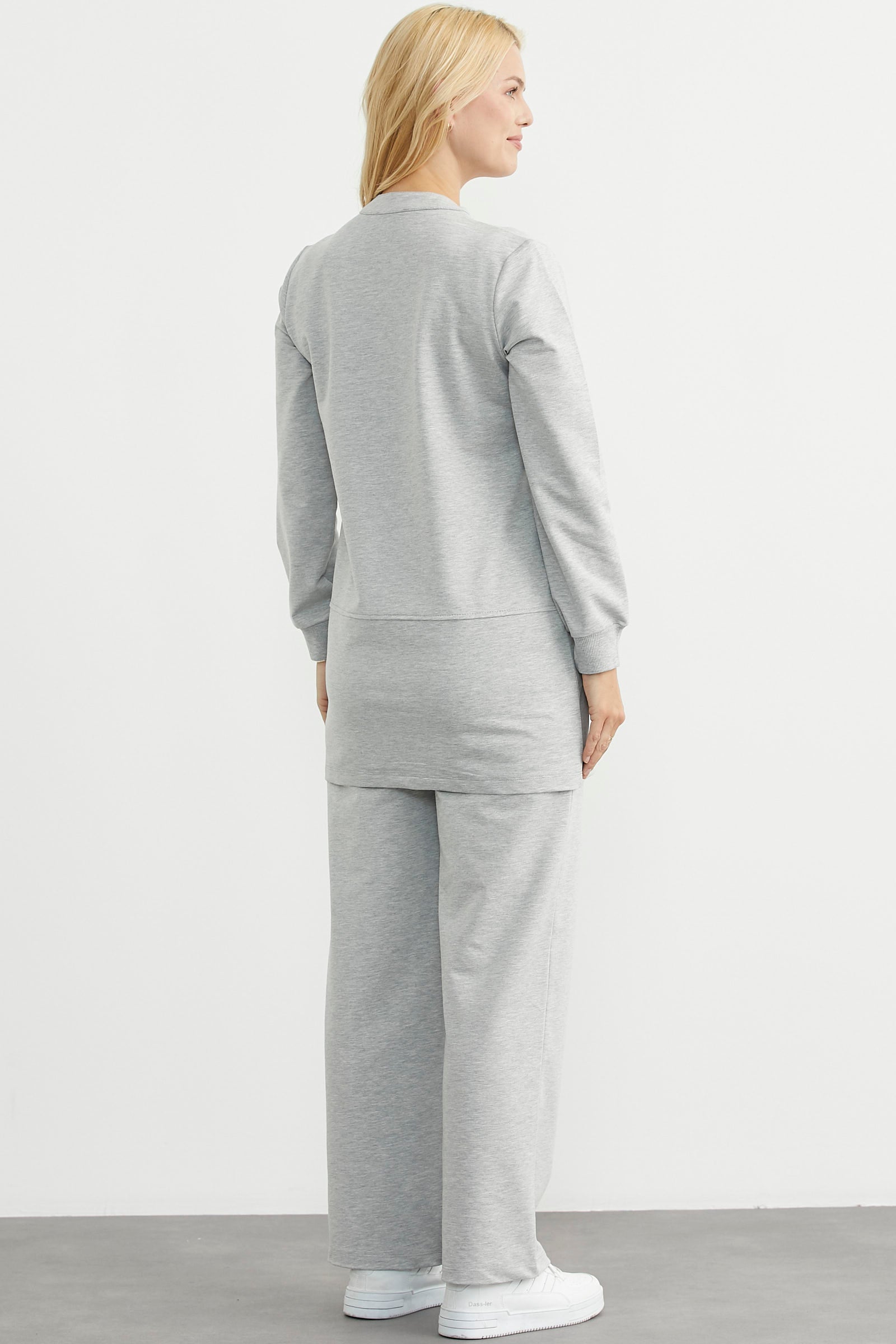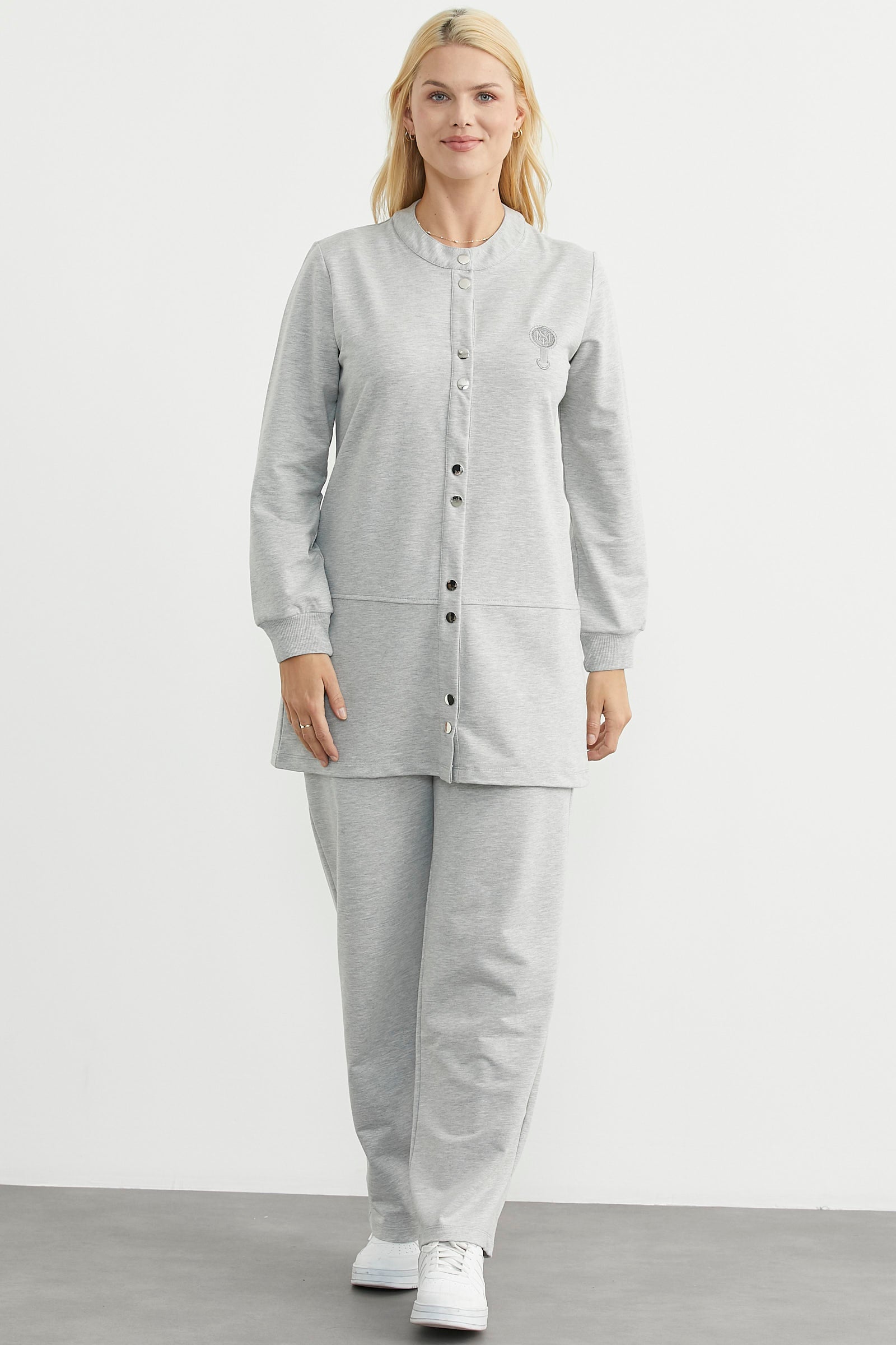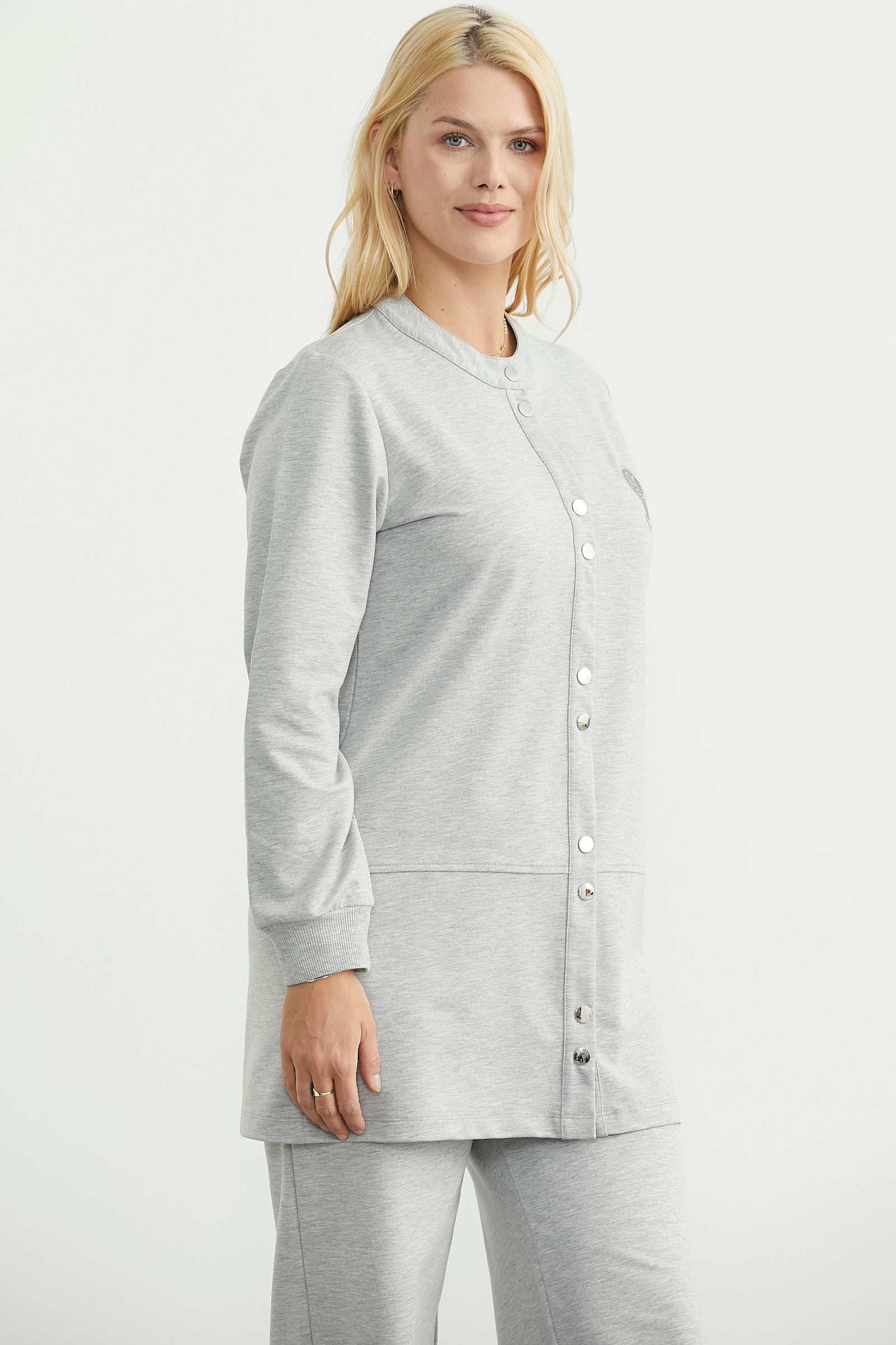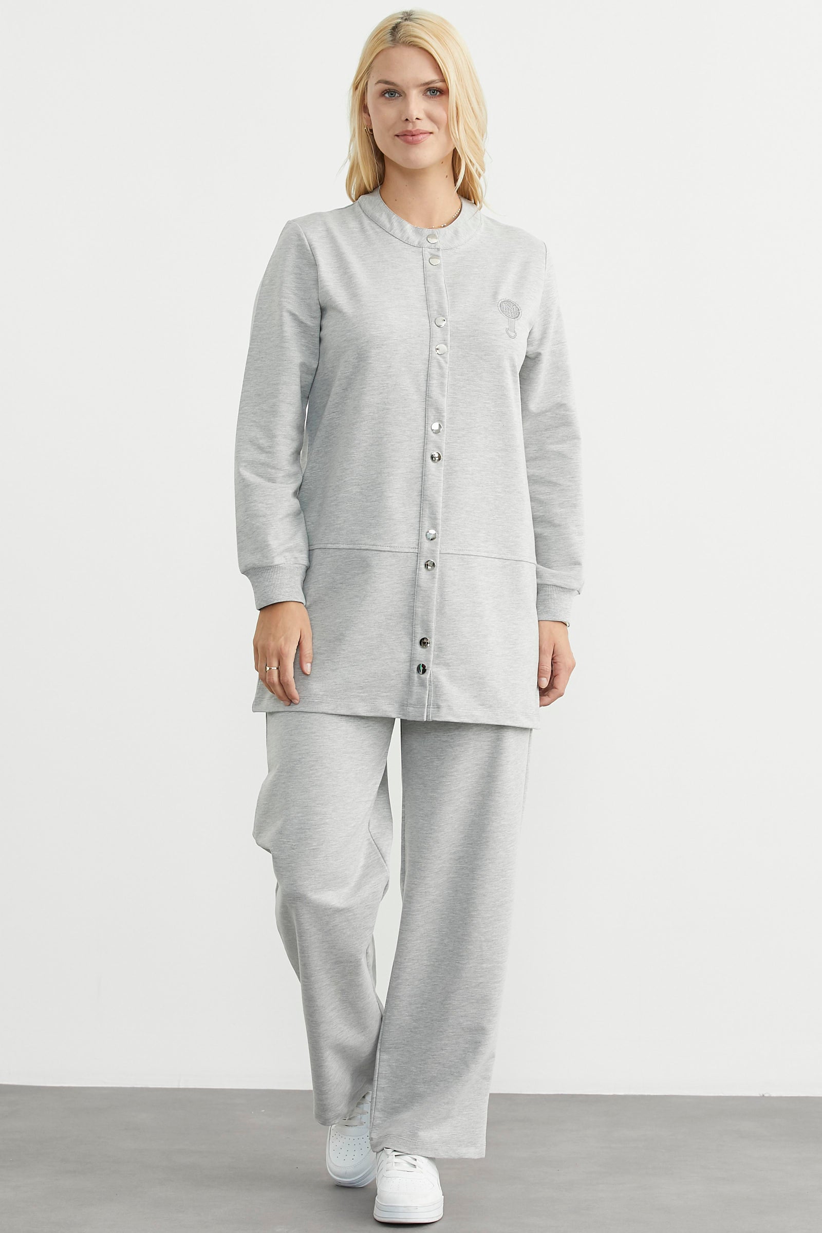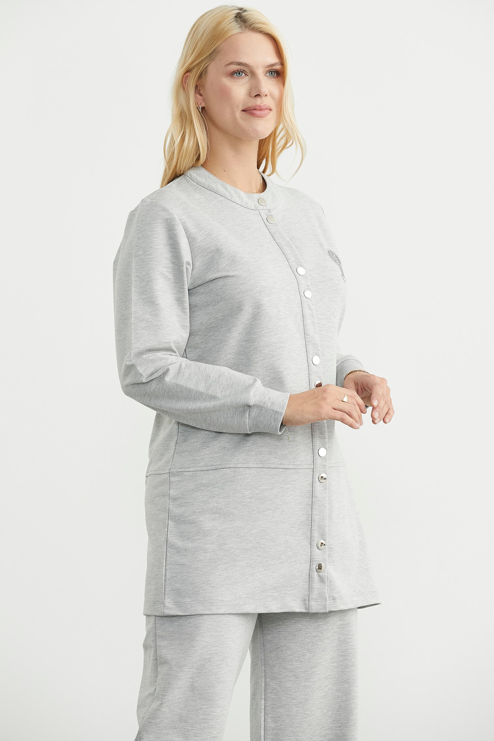 Çıtçıtlı Tunik Boy Eşofman Takım - Gri