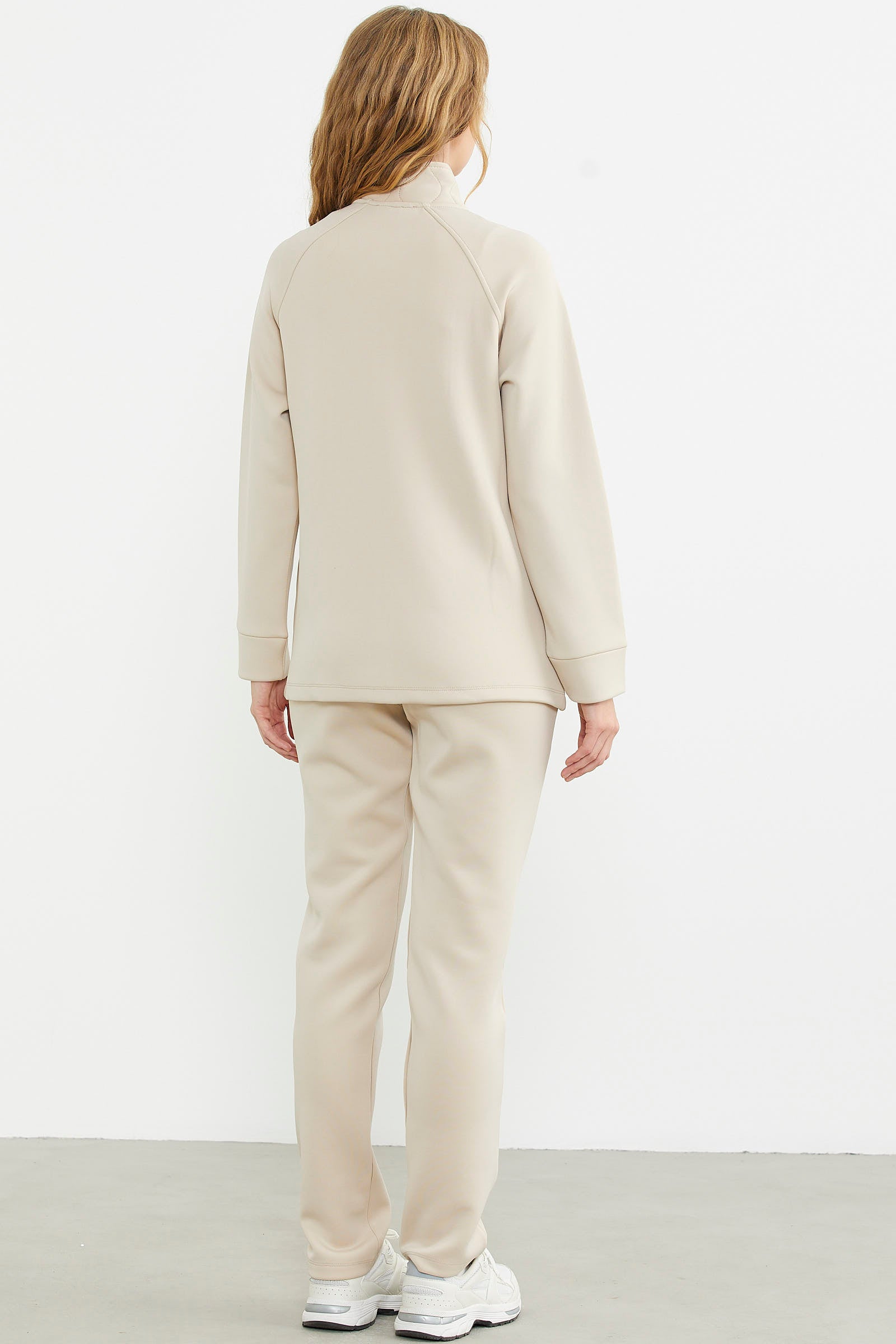 Dik Yaka Fermuarlı Eşofman Takım - Bej