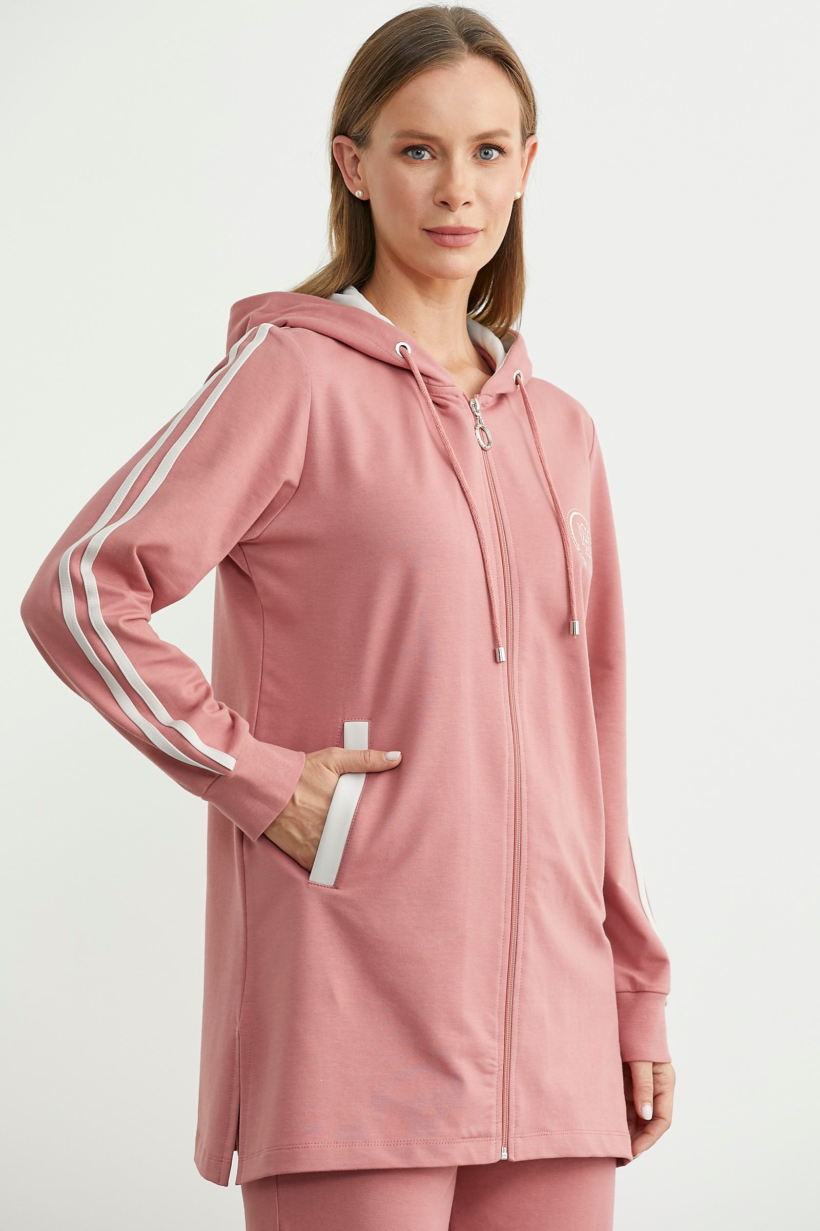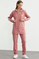 Kapüşonlu Tam Fermuarlı Eşofman Takım - Gül Kurusu