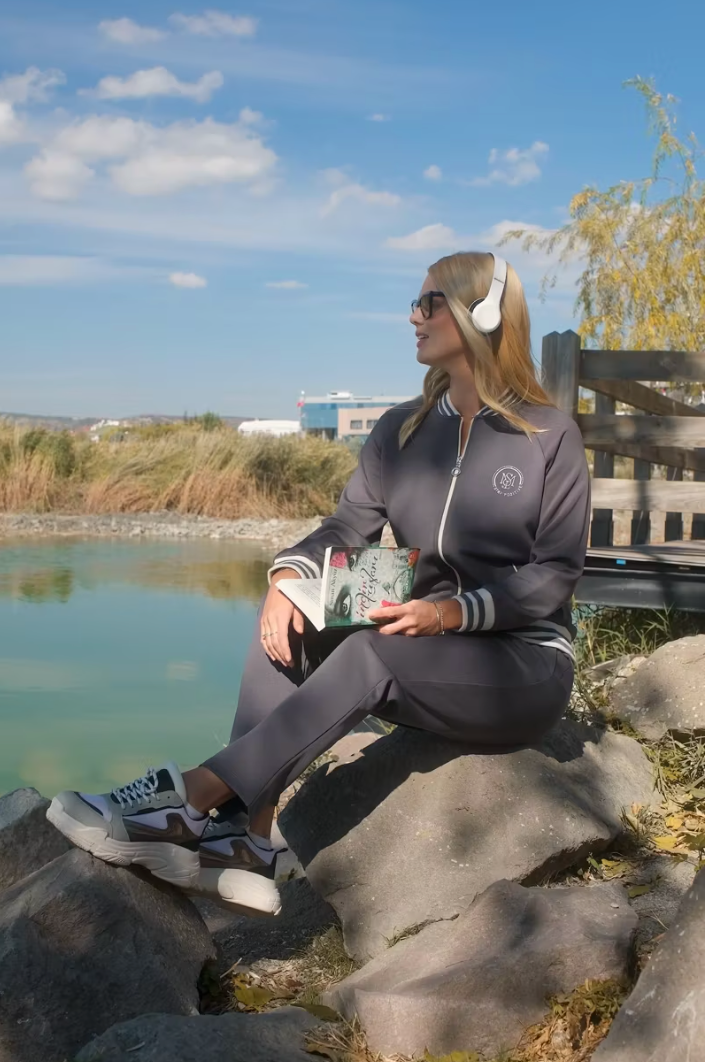 Şerit Detaylı Scuba Eşofman Takım - Antrasit