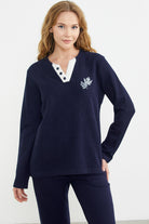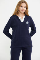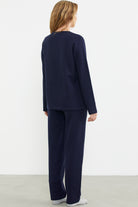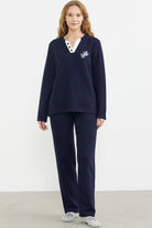 Fitilli Yaka Detaylı Pijama Takım - Lacivert