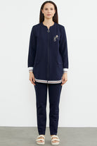 Neon Kombinli Rahat Kalıp Tunik Eşofman Takım - Lacivert
