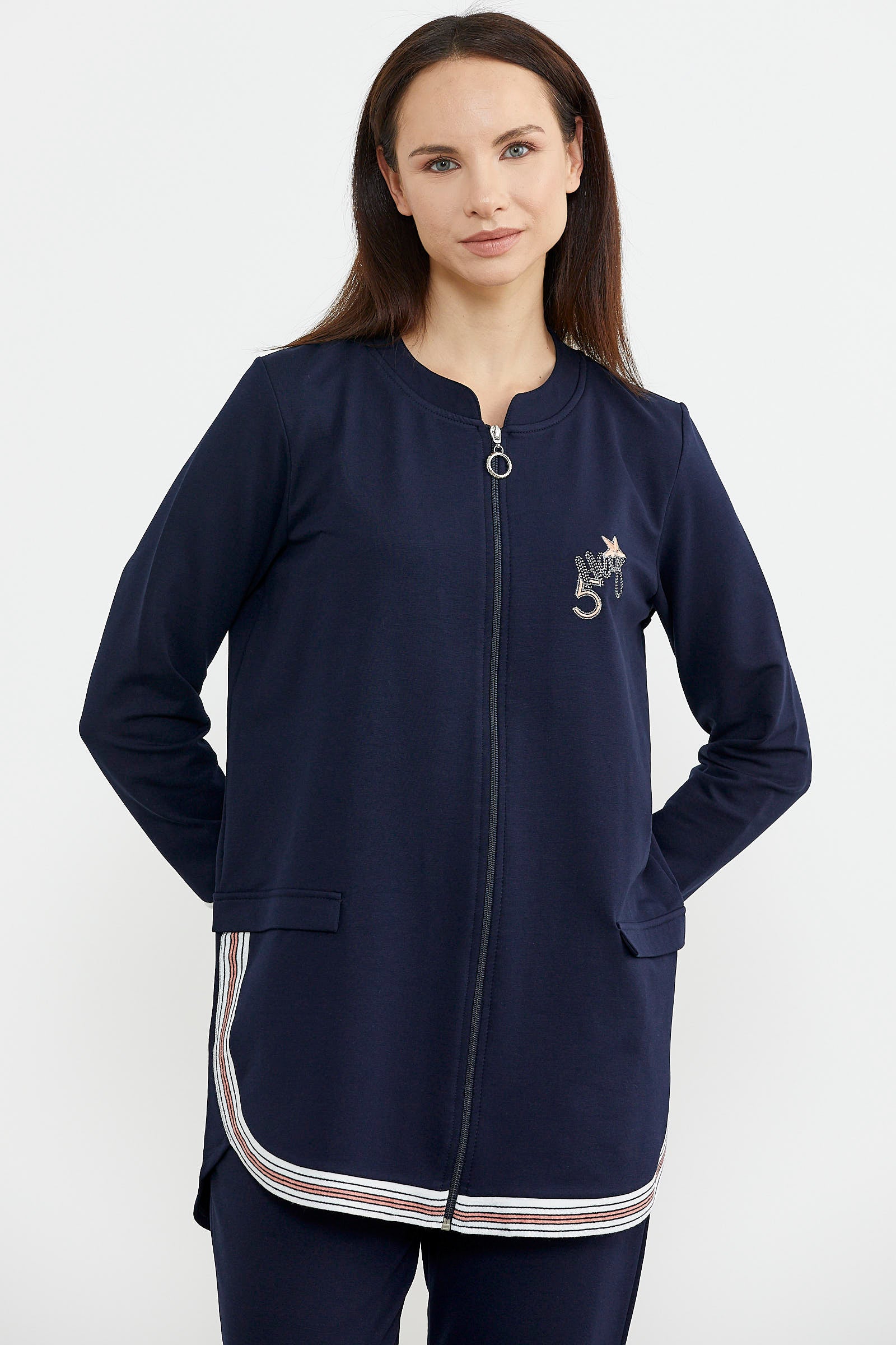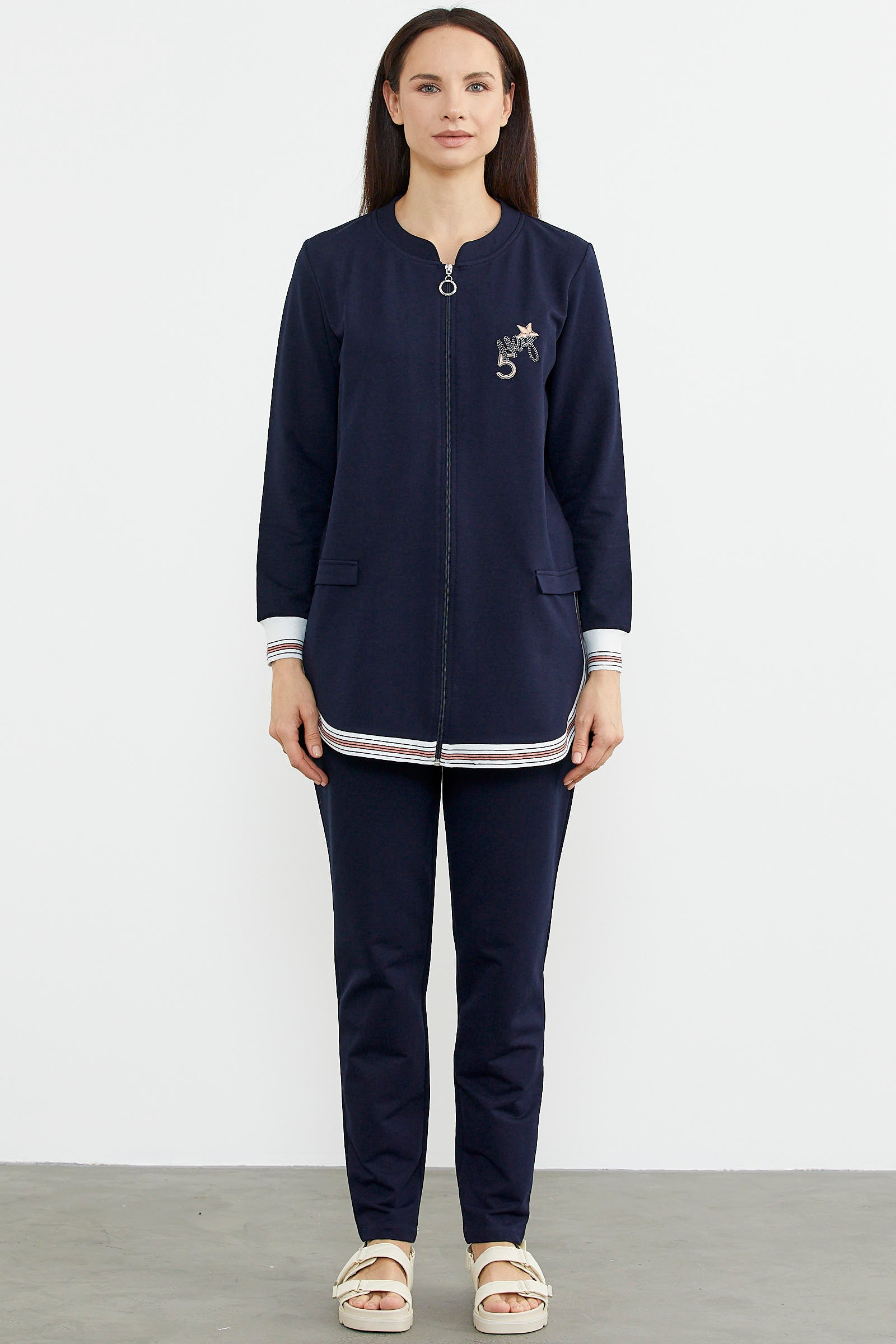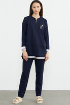 Hakim yaka fermuar kapamalı tunik eşofman takımrahat kalıp olarak üretilmiştir. Ev ve sokak stilinize kolaylıkla uyum sağlamaktadır.