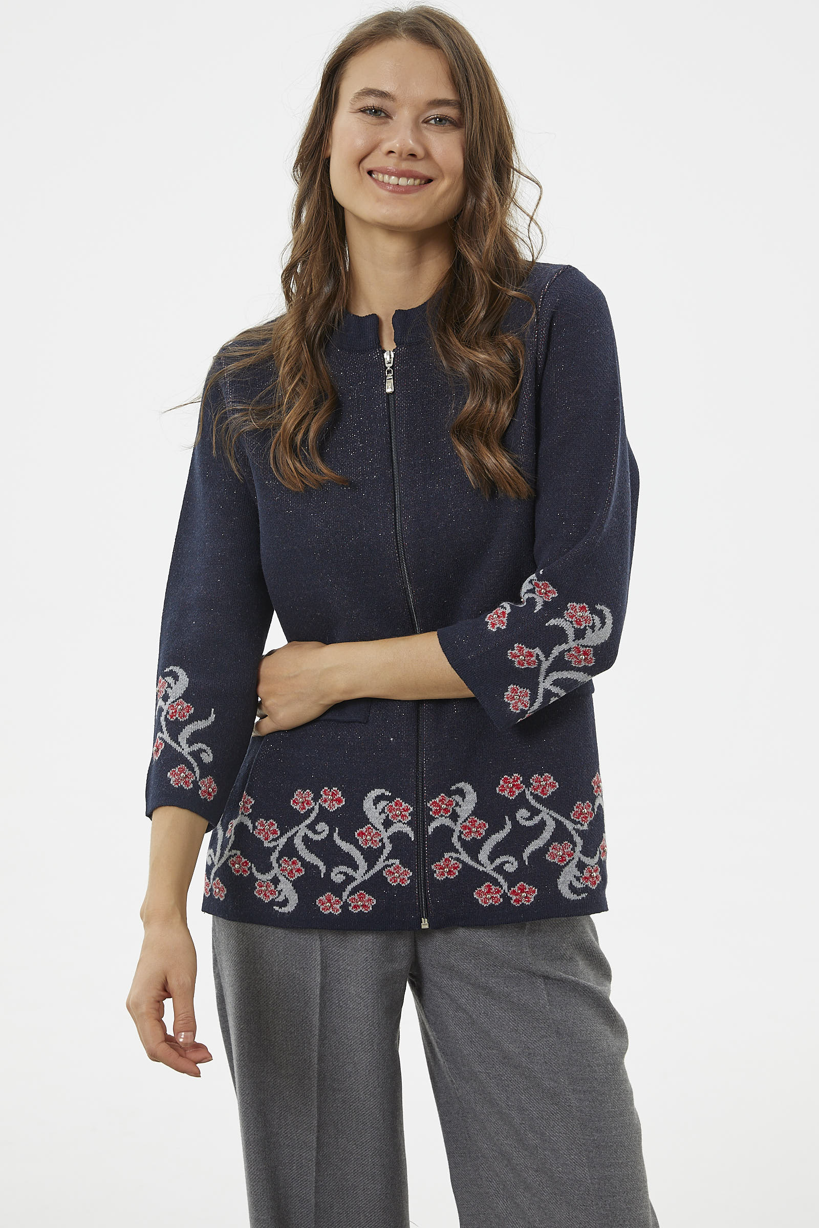Etek ucu ve kol ağızlarında bulunan çiçek detaylarıyla zarif bir görünüm yaratan triko hırka en sade görünümlerinizi bile taçlandırıyor. Esnek ve yumuşak dokusu ile konfor sağlarken fermuarı sayesinde kullanım kolaylığı sağlamaktadır.