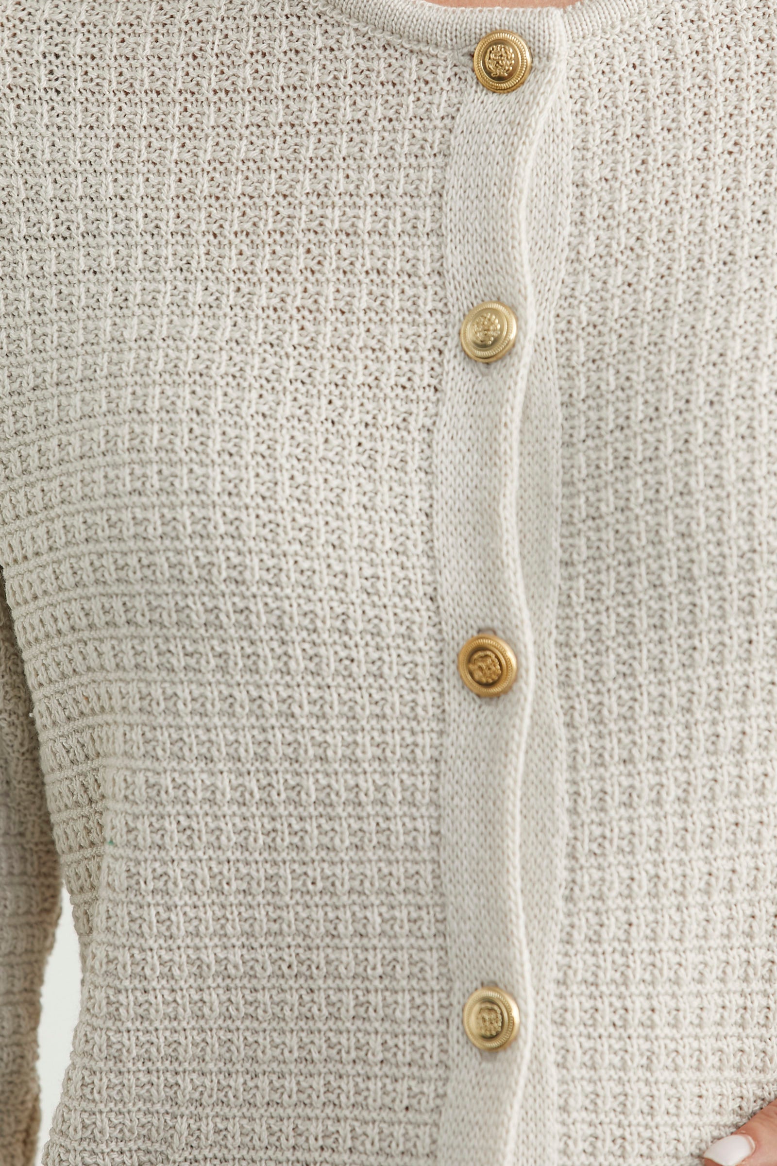 Dore Düğme Detaylı Yünlü Triko Hıırka - Taş