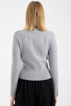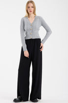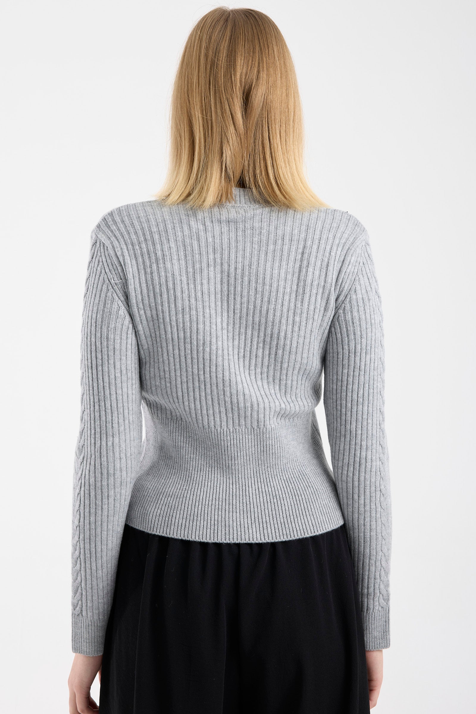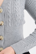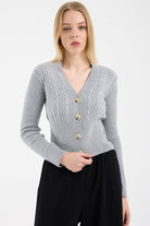 Düğmeli Pirinç Motifli Triko Hırka - Gri