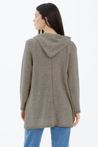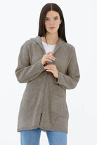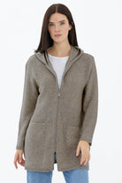 Kapüşonlu Fermuarlı Pullu Triko Hırka - Vizon