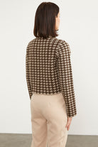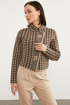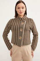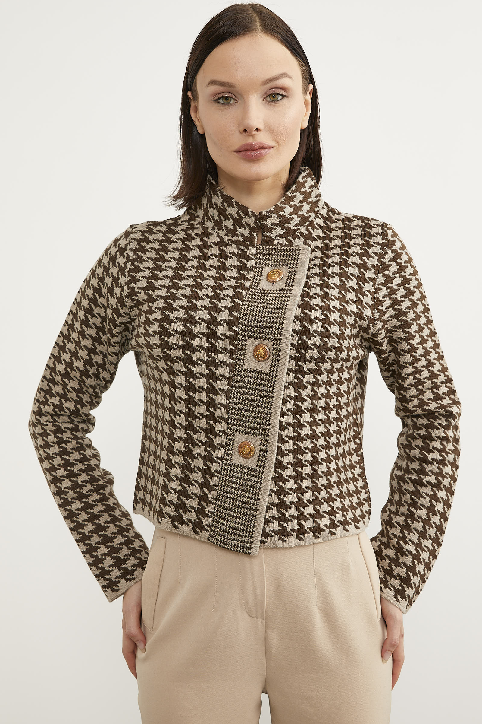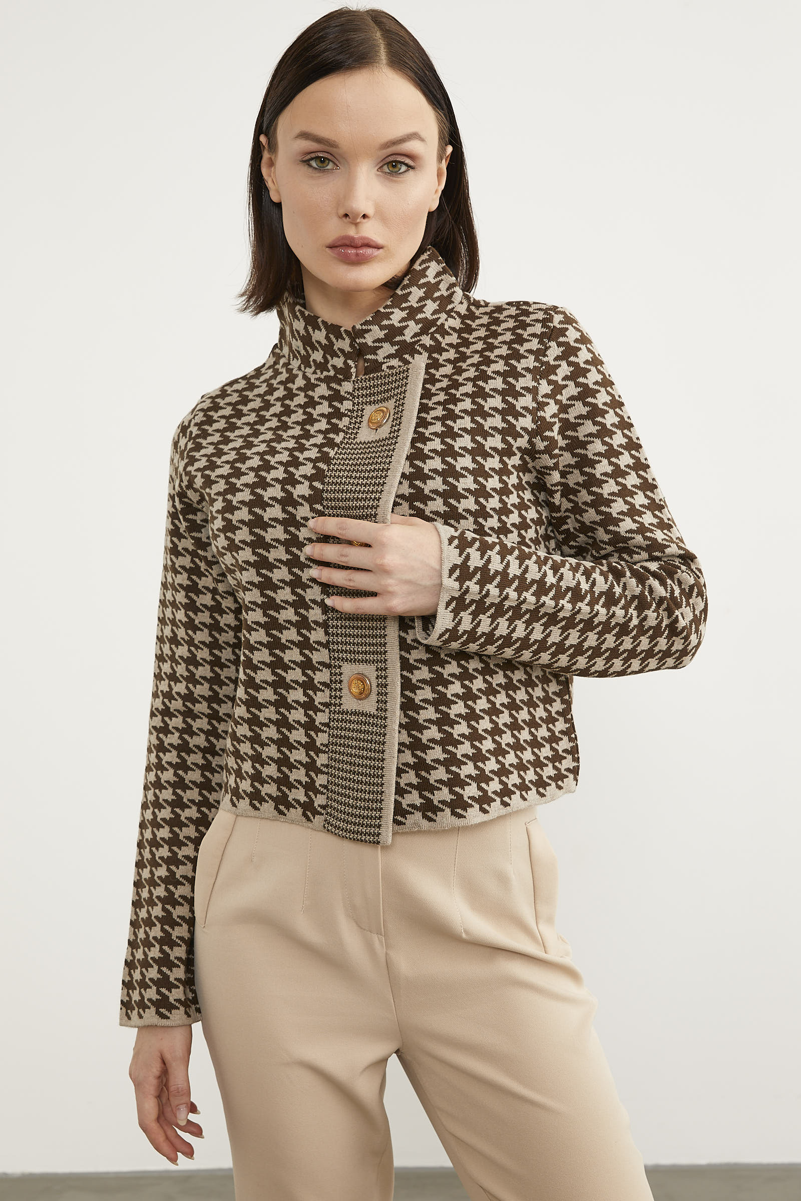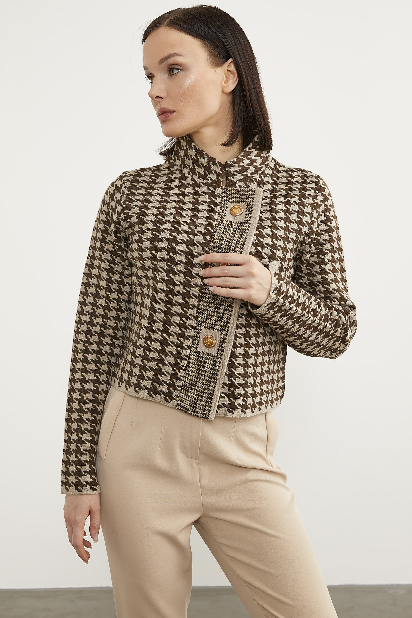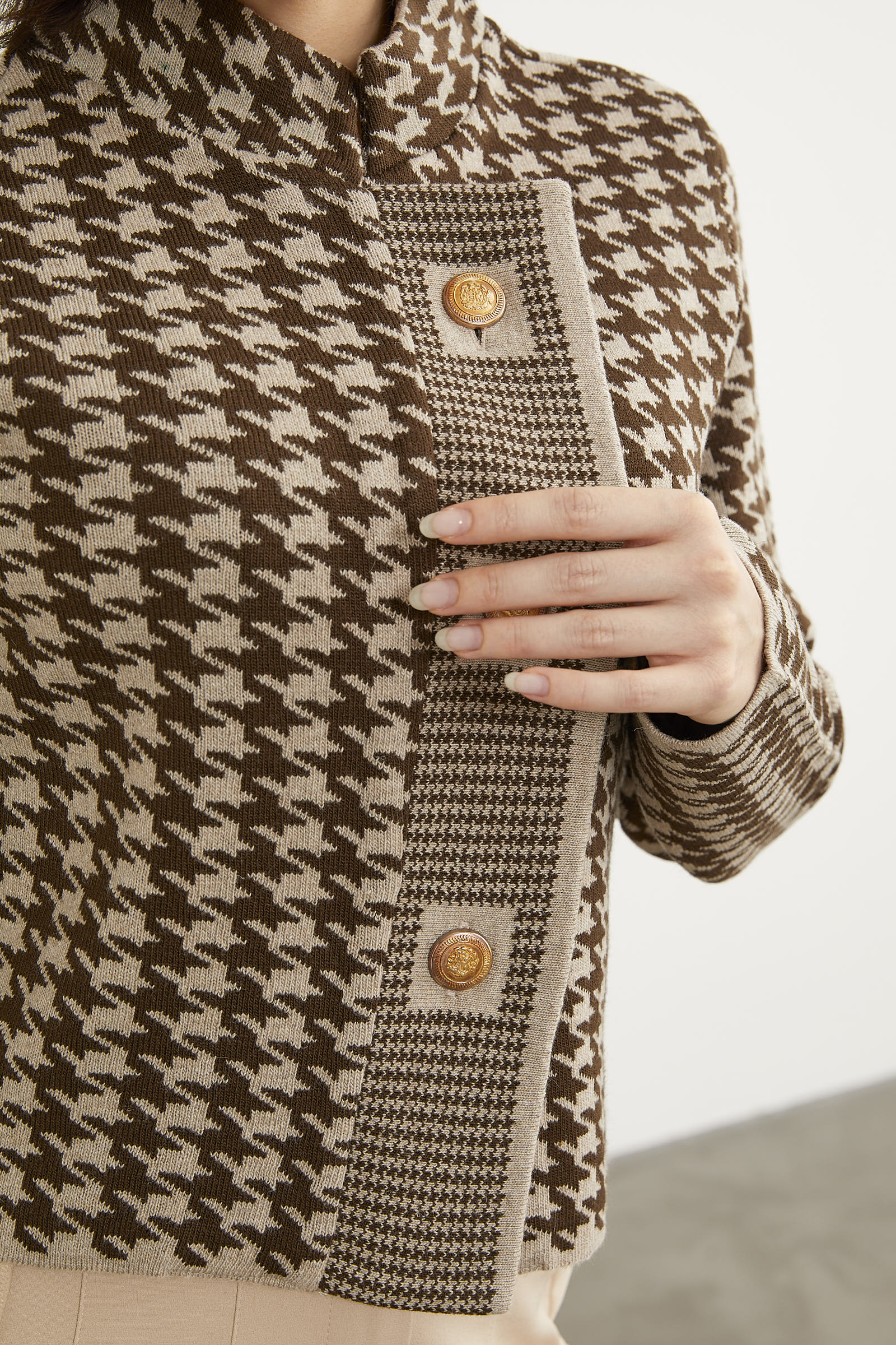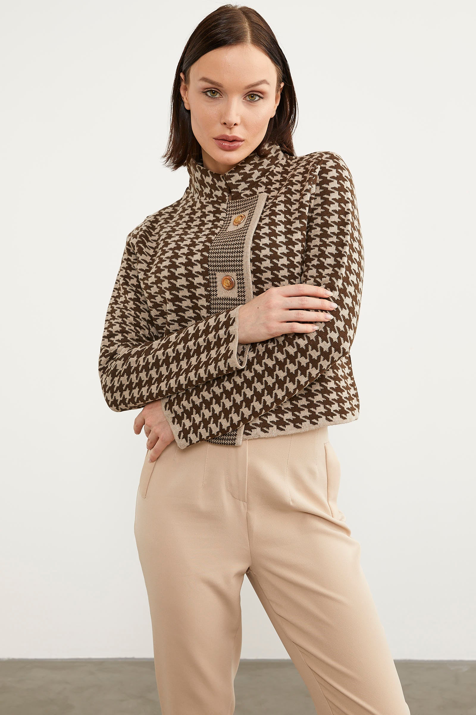 Kazayağı Desenli Dik Yaka Triko Hırka - Vizon