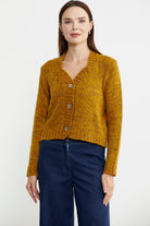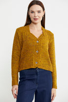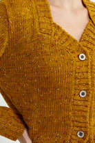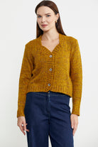 Kırçıllı Yaka Detaylı Yünlü Triko Hırka - Hardal