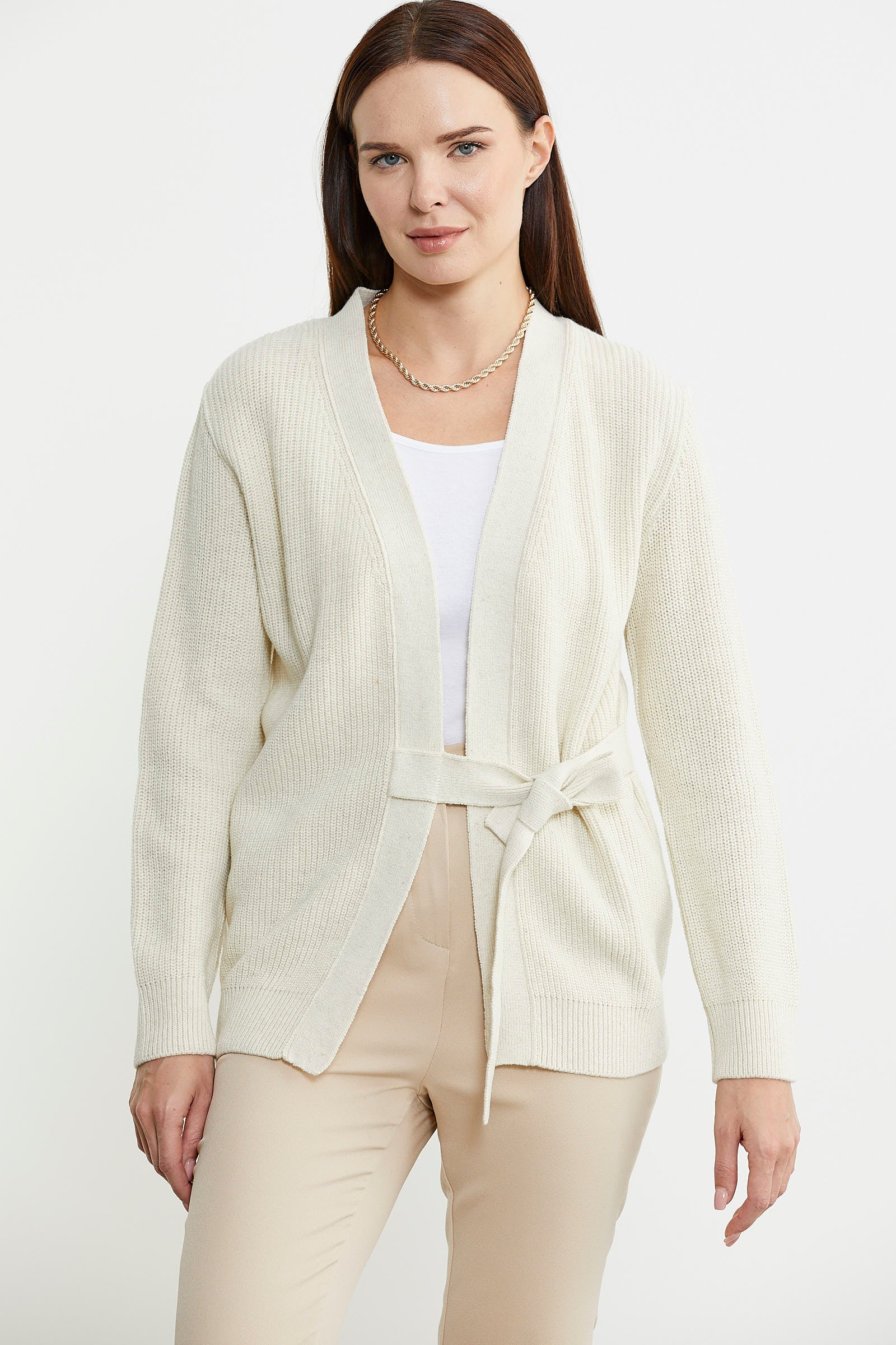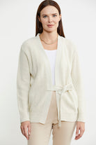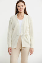 Kuruvaze Kuşaklı Yün Triko Hırka - Açık Bej