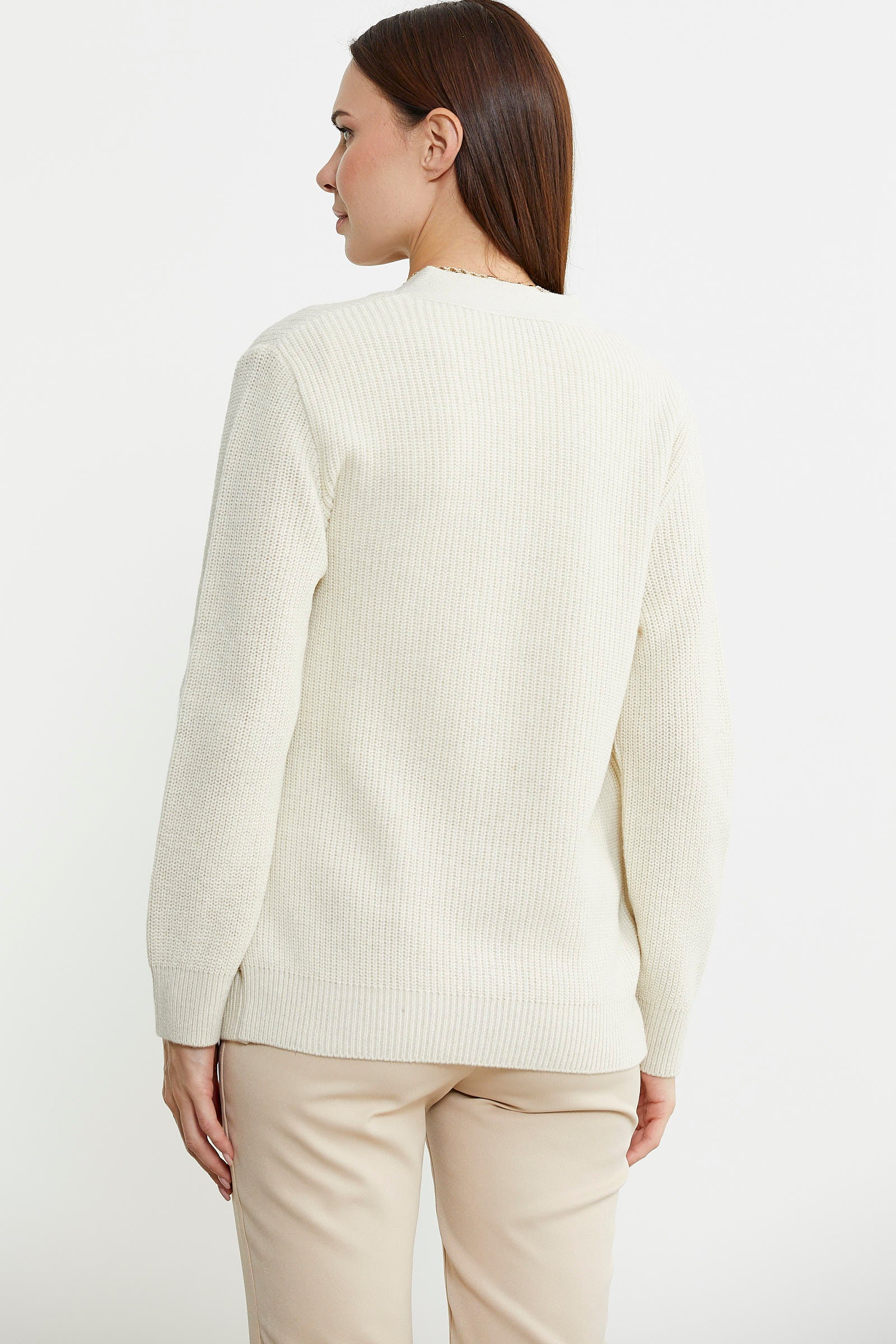 Kuşak detaylı, yandan bağlamalı triko hırka. Rahat kalıptır.