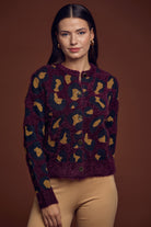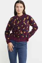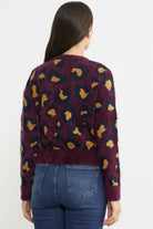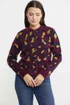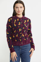 Leopar Desenli Sakallı Triko Hırka - Bordo