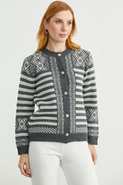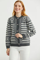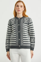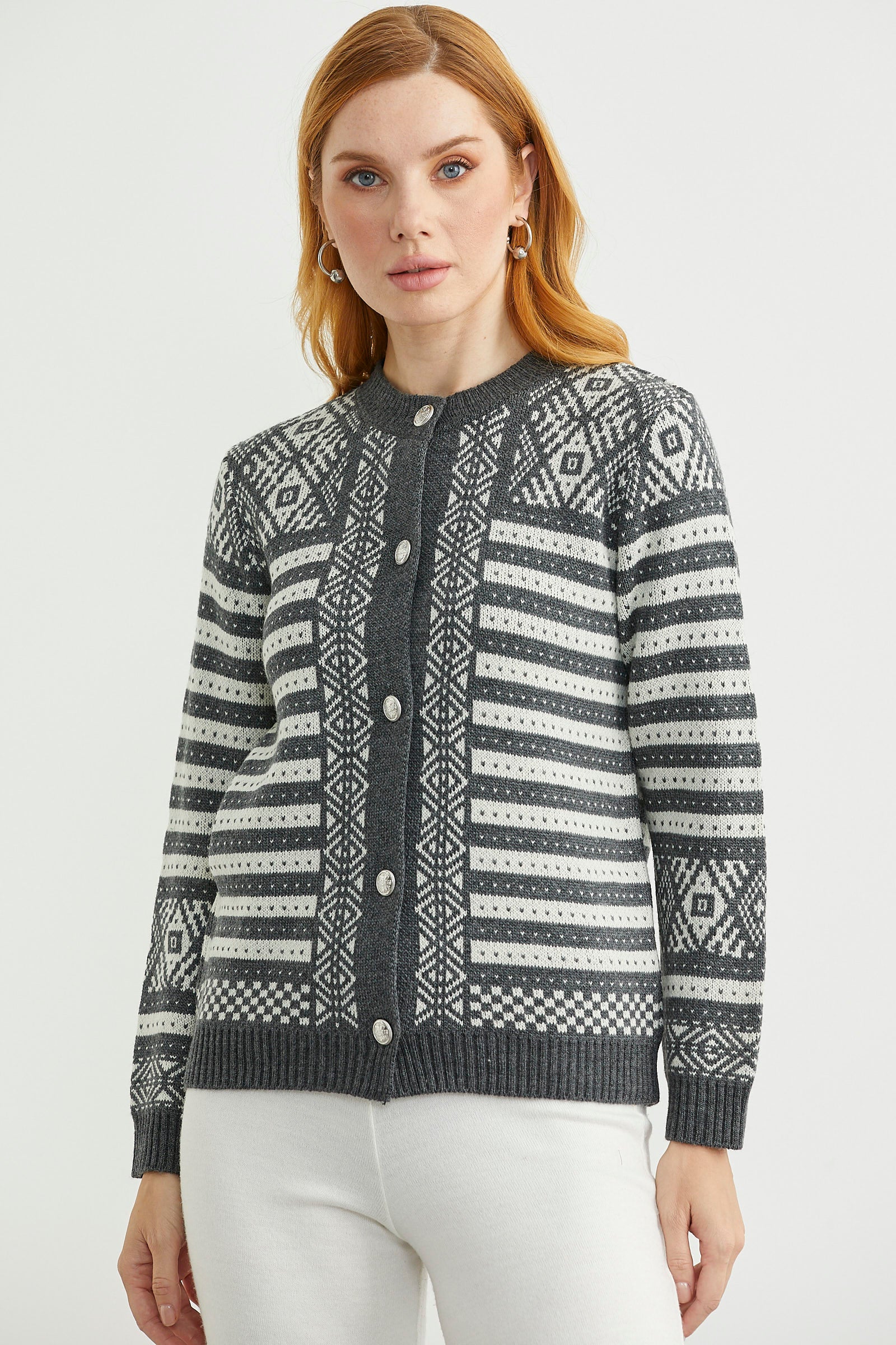 Metal Düğmeli Çizgili Yünlü Triko Hırka - Antrasit