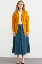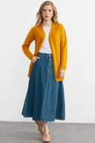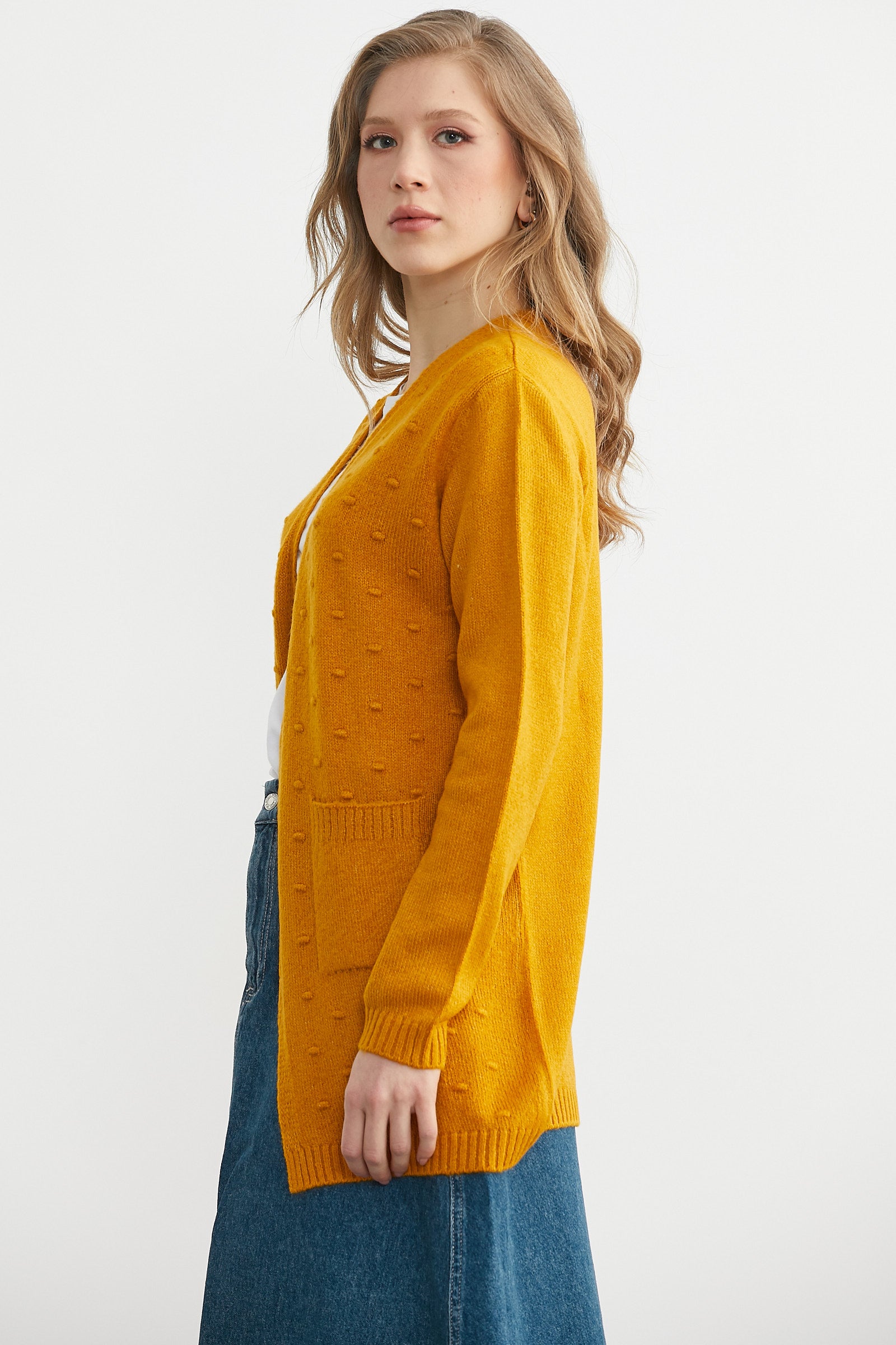 Örgü Detaylı Cepli Uzun Triko Hırka - Kayısı