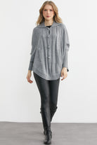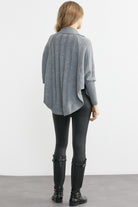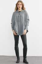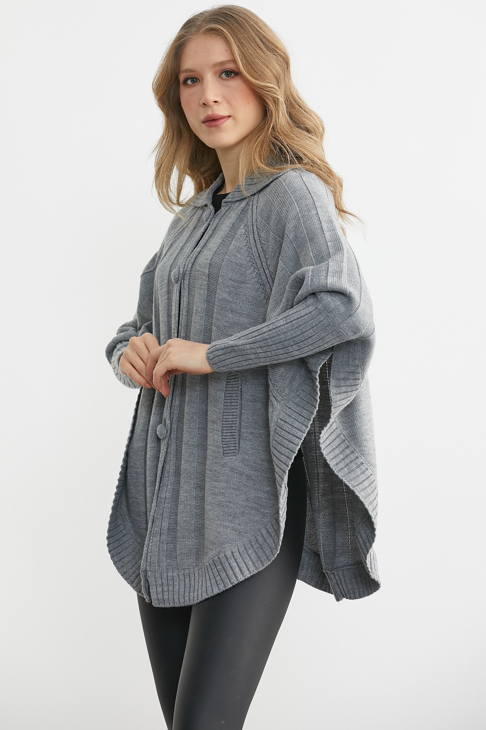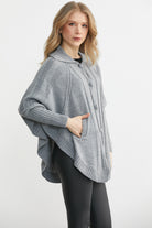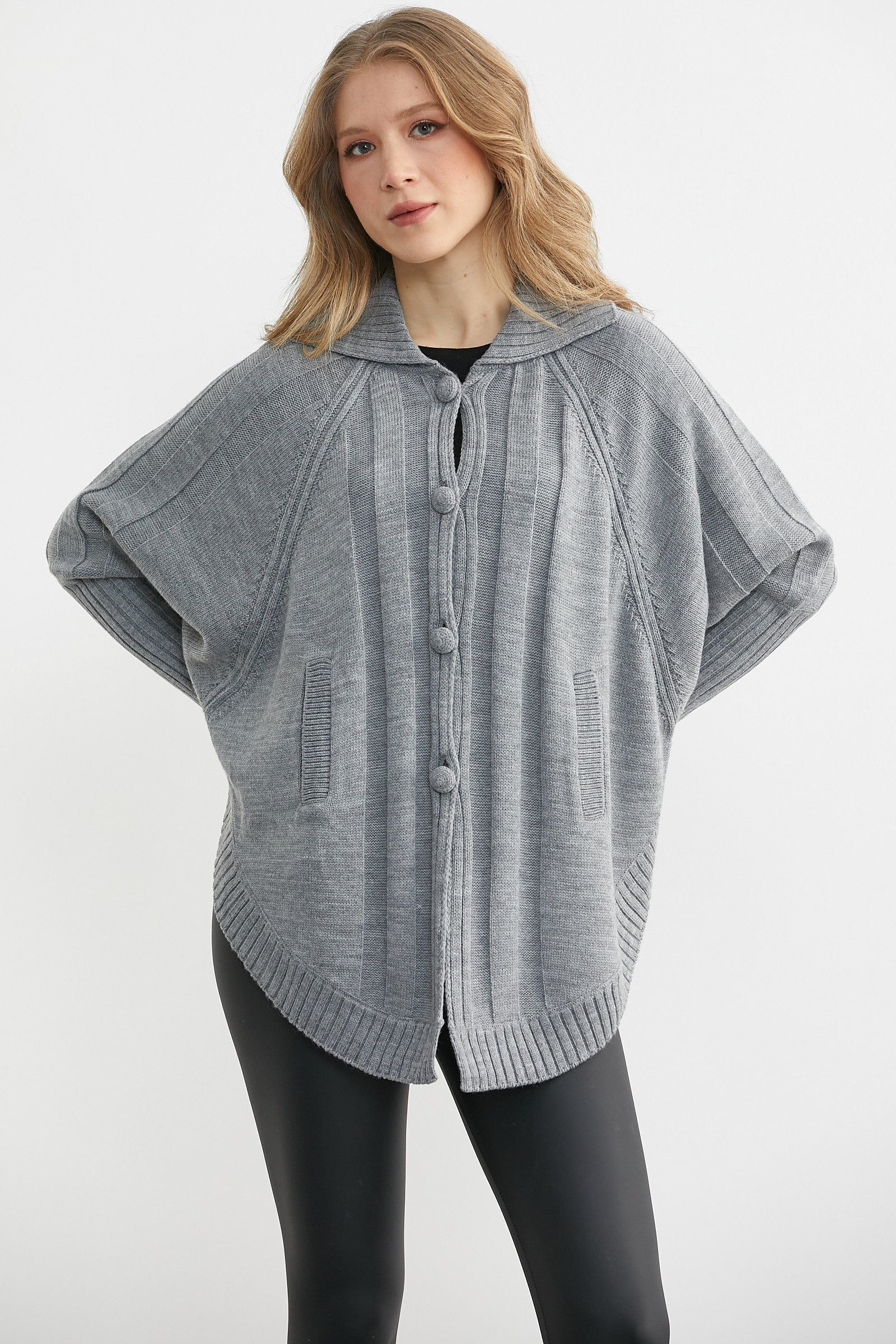 Polo Yaka Düğmeli Pelerin Hırka - Gri