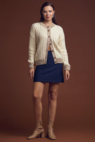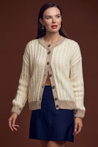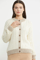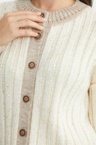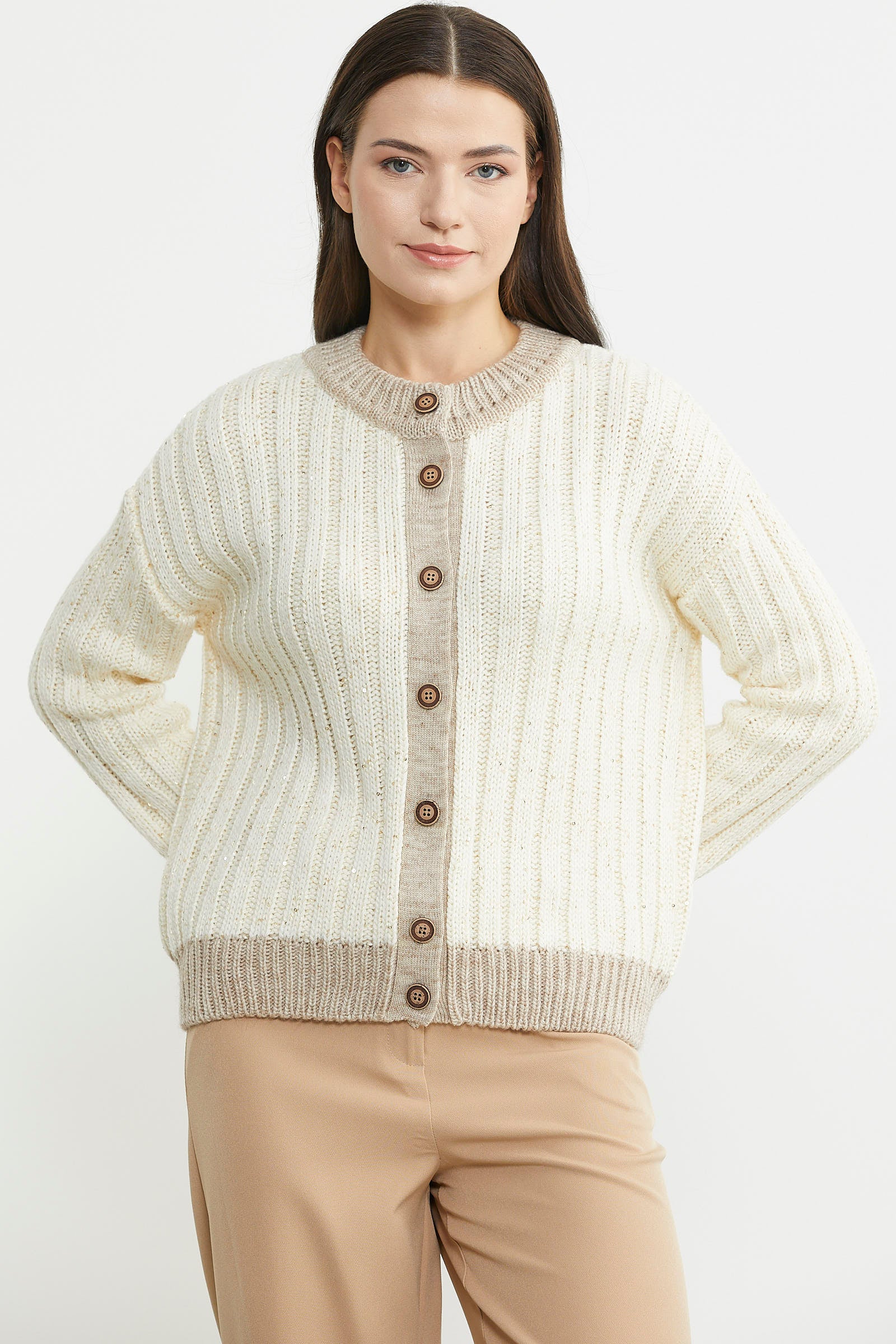 Pul Payet Detaylı Yünlü Triko Hırka - Kemik