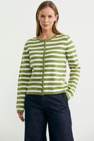 Renkli Çizgili Triko Kısa Hırka - Yeşil