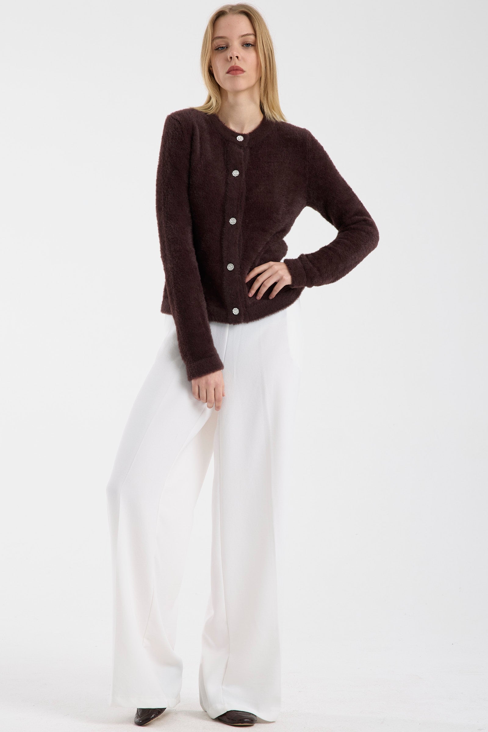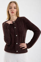 Sakallı Yumoş Düğmeli Triko Hırka - Kahve