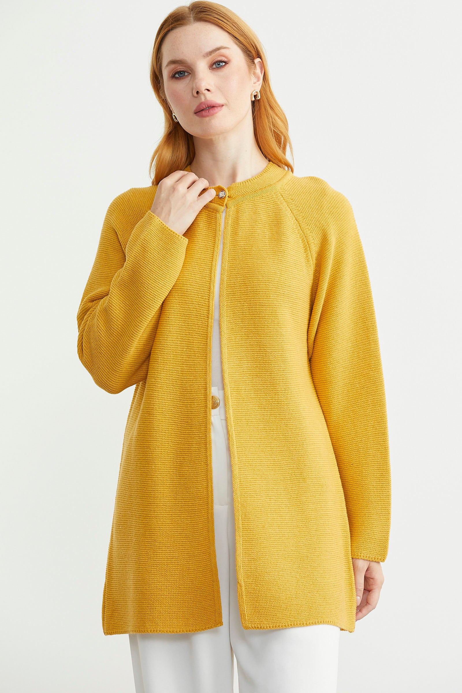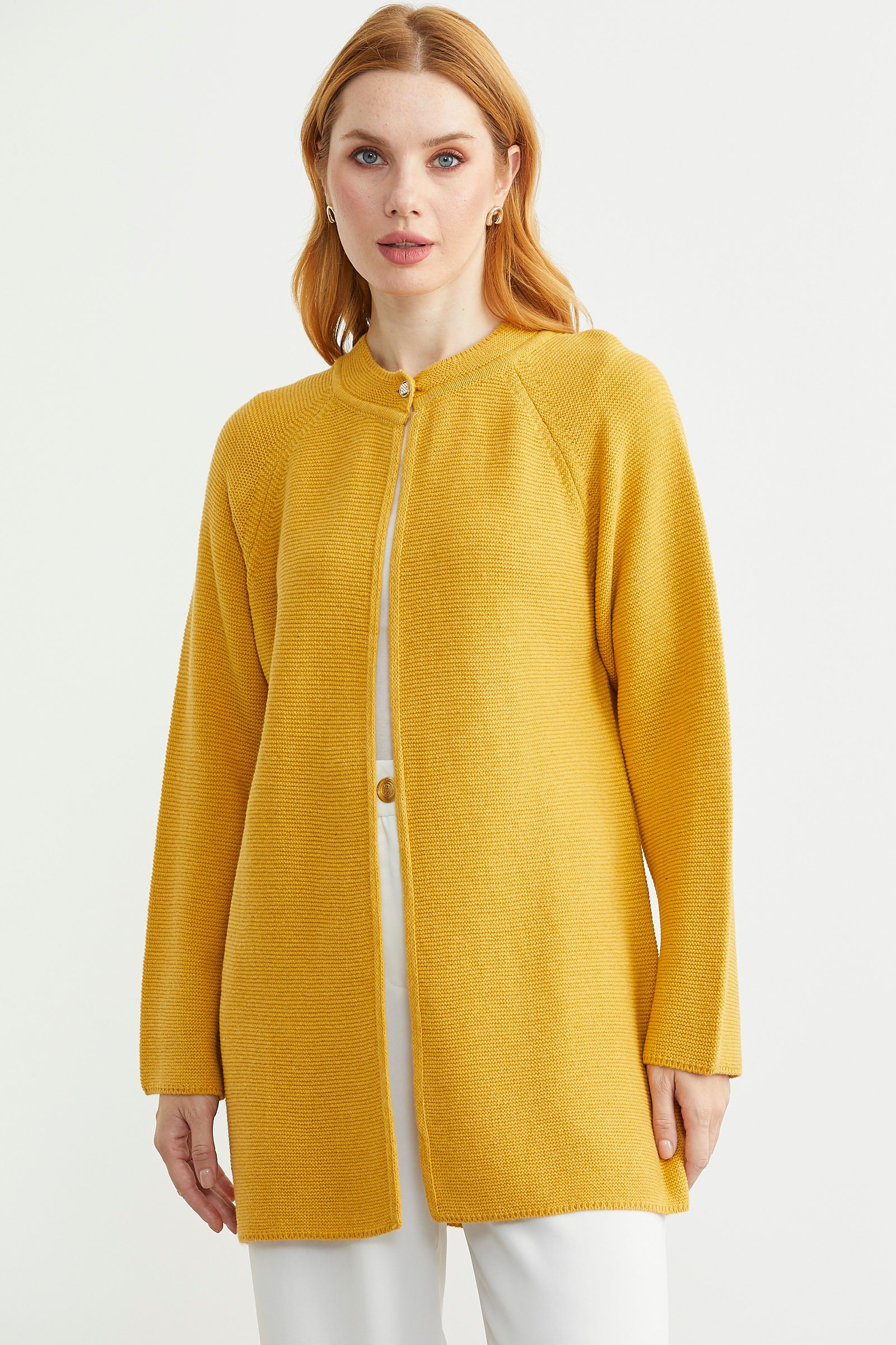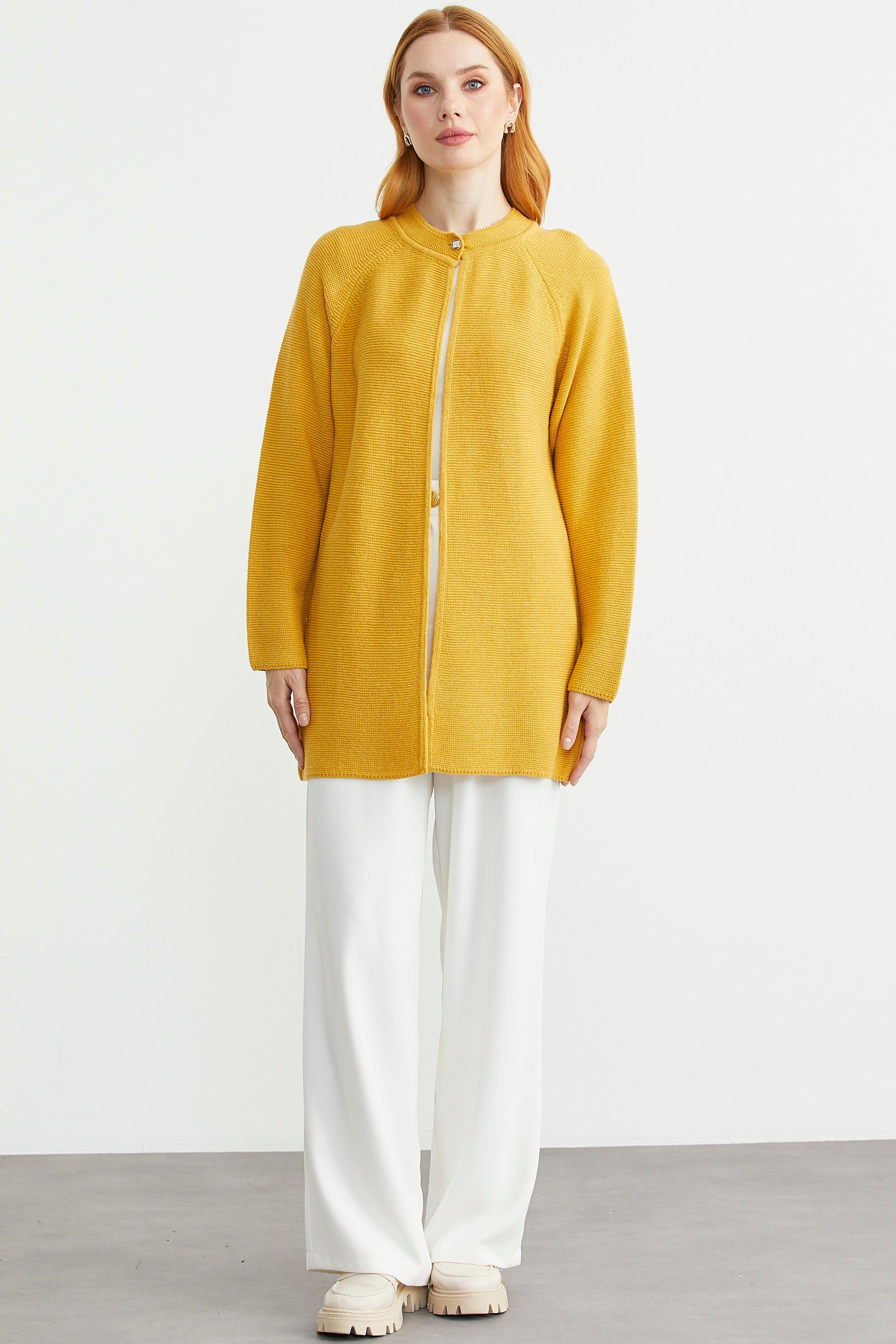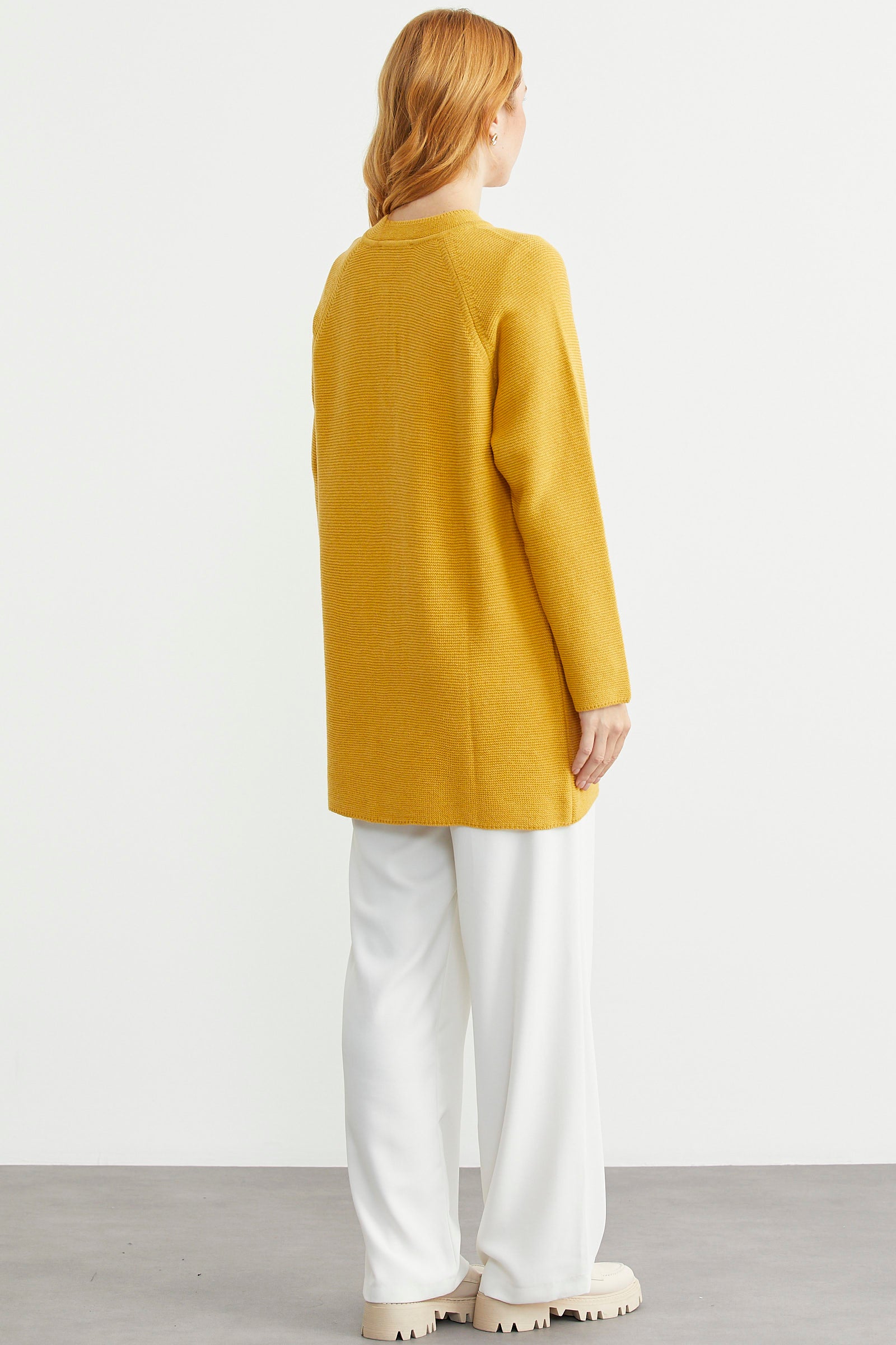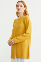 Sıfır Yaka Yünlü Uzun Triko Hırka - Güneş