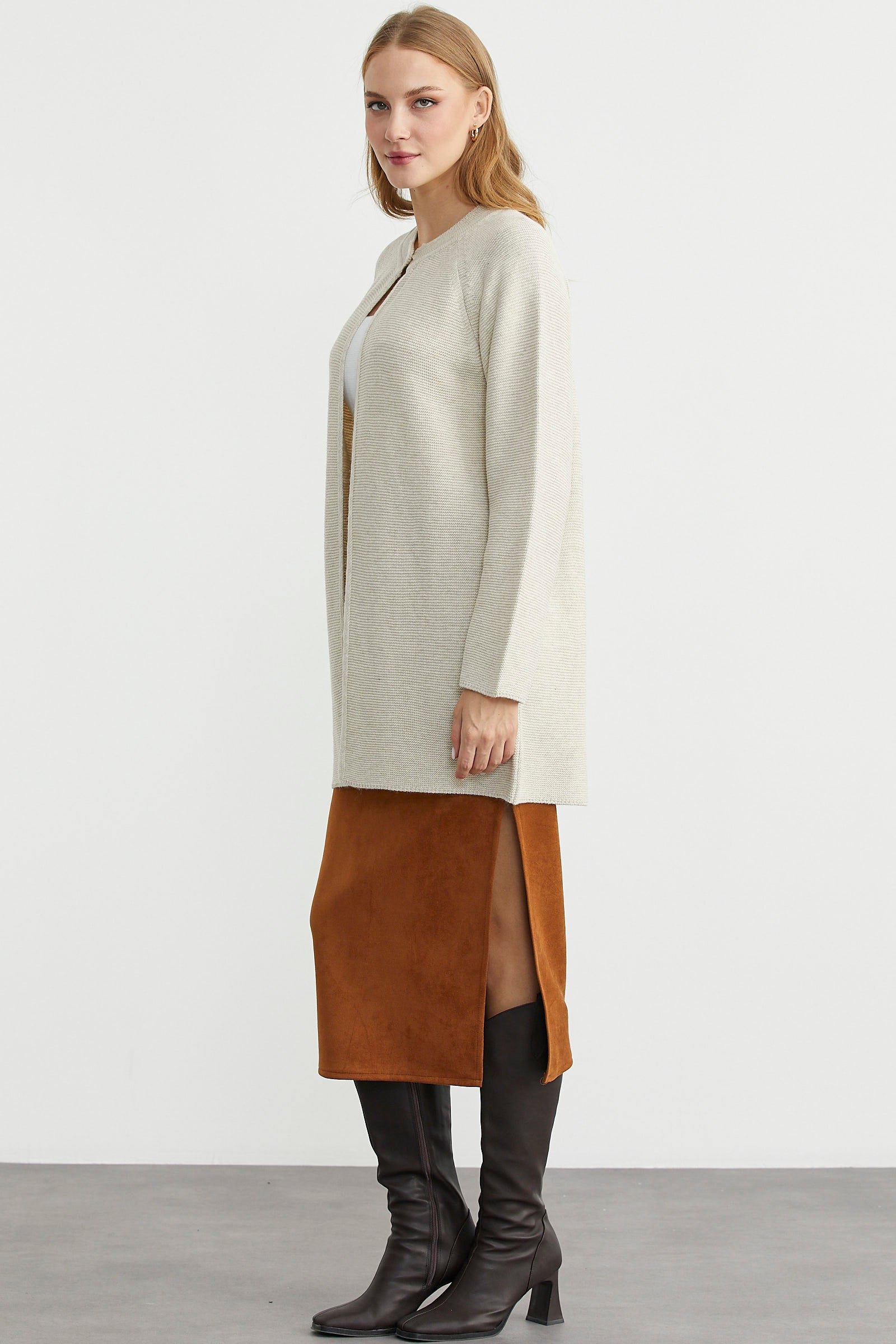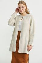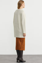 Sıfır Yaka Yünlü Uzun Triko Hırka - Taş