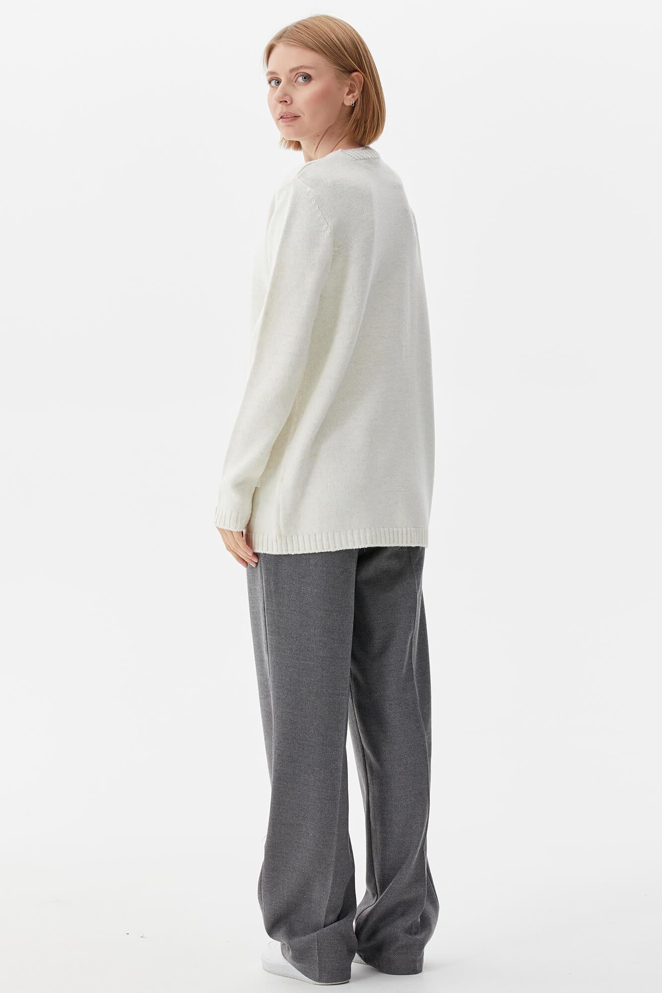 V Yaka Cepli Kadın Triko Ceket - Kemik