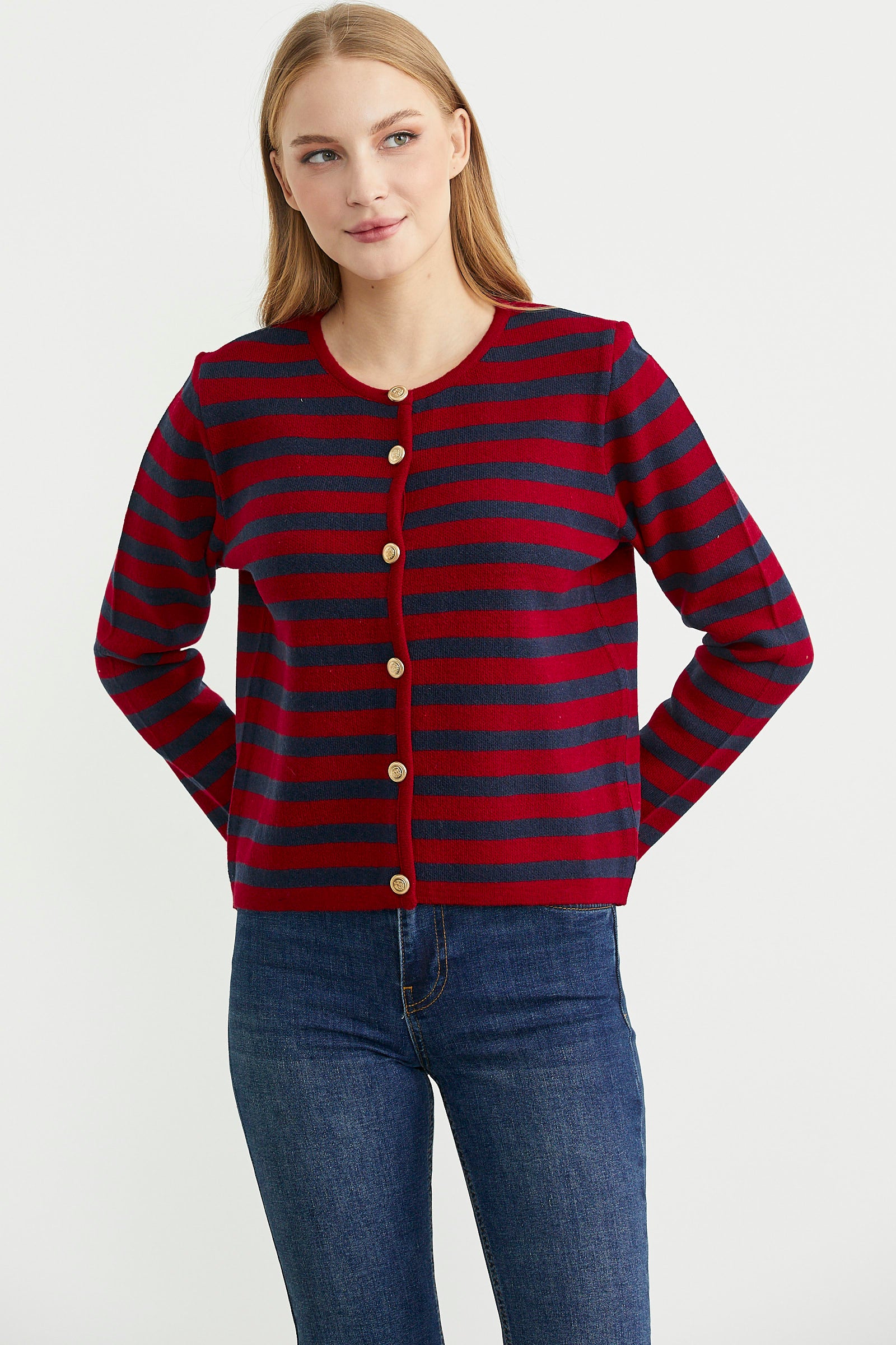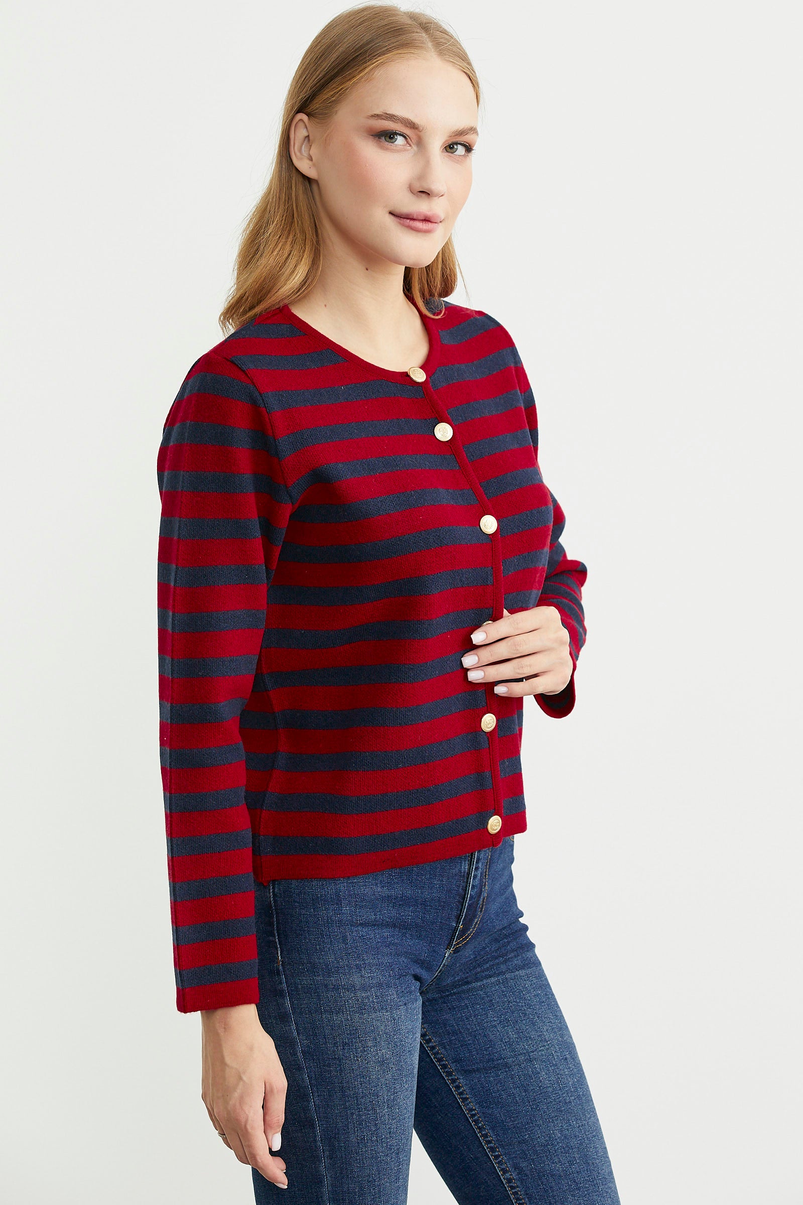 Ayrıca düğmeli kadın hırka modelleri, kış aylarında daha sık karşımıza çıkıyor. Hırkalarda düğmelerle oluşturulan hareket, yine desenlerle pekiştiriliyor. Bu noktada Sementa’nın en sevilen ürünlerinden biri, desenli V yaka triko kadın hırka modeli! Bu model çizgili desenler ve gül, bej, koyu gri, siyah gibi renklerle beğeninize sunuluyor.