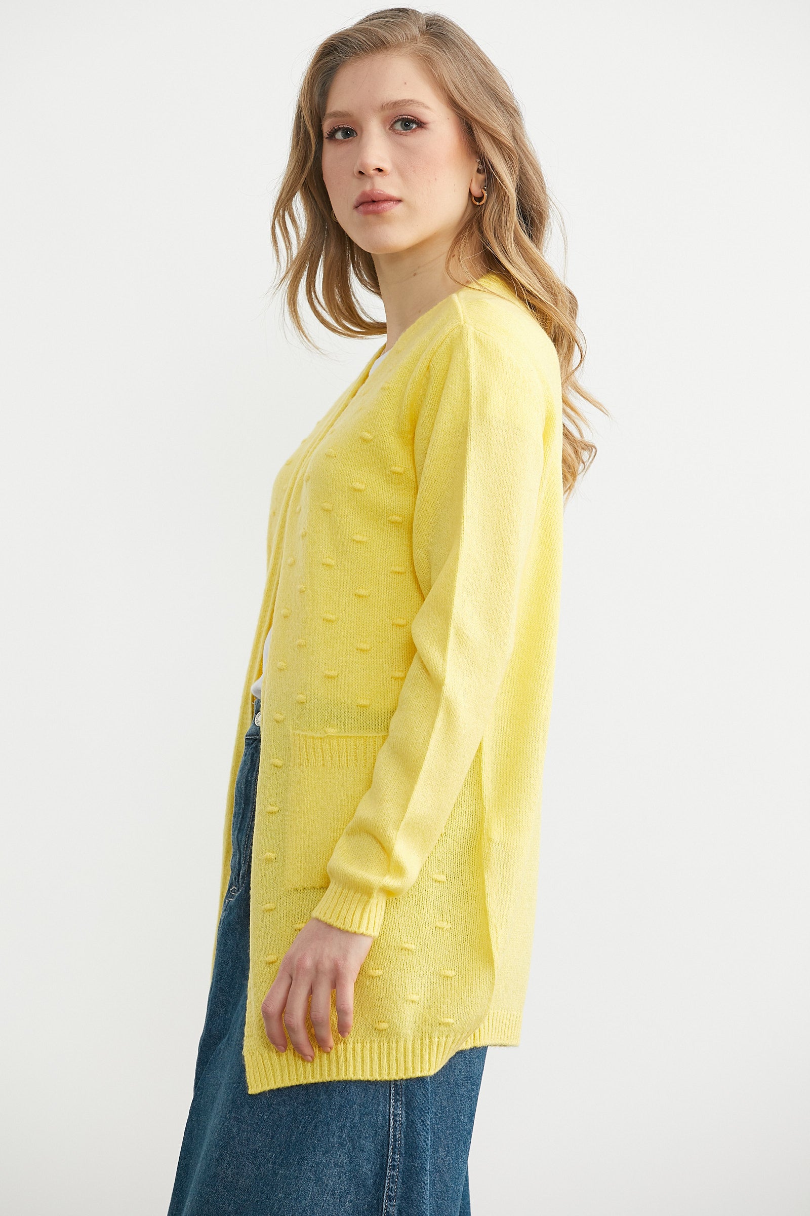 Sementa olarak sizler için hazırladığımız ürünlerin çeşitlilik gösterdiği noktalardan birisi düğmeleridir. Hırkaların pratik şekilde giyilmesinde kullanılan düğmeler tarzının değişmesinde de rol oynar. Büyük ve az sayıda düğme içeren modellerin yanı sıra küçük ve çok düğmeye sahip alternatifler de mevcuttur. Bel çevresindeki kuşak yardımıyla önü kapatılan modeller de vardır. Bu modellerde kemerin rengi ve kalınlığı, dikkat çekici bir duruş sergilemesini sağlayabilir. Özellikle kalınlığı fazla olan ve hırka renginden farklı tonlarla bezenmiş kemerler ön plana çıkar. Sizlerle buluşturulan birbirinden farklı hırkaları incelerken tasarımlarının bu detayına da dikkat edebilirsiniz.