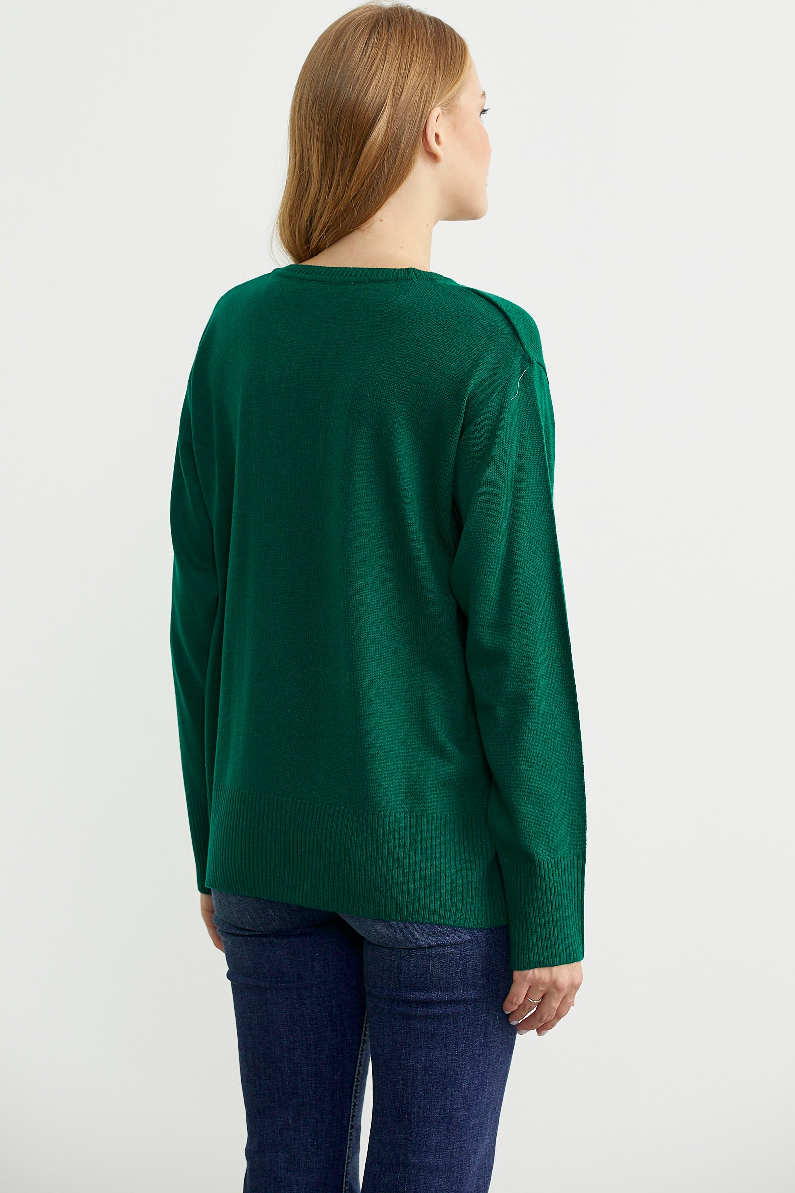 Öncelikle kazağınızı bedeninize ve vücut şeklinize göre seçmelisiniz. Elma tipi vücut şekline sahip kadınlar, V yaka kadın kazak modellerine öncelik verebilir. Aynı zamanda tunik kadın kazak modellerini de değerlendirebilirler. Kısacası, böyle bir vücut şekliniz varsa uzun kadın kazak modelleri tam size göre! Bu tip seçimler vücut şeklinizi öne çıkartmak yerine daha fit bir görünüm oluşturmanızı sağlar. Böylesi bir görünüm de şıklığınıza şıklık katar!