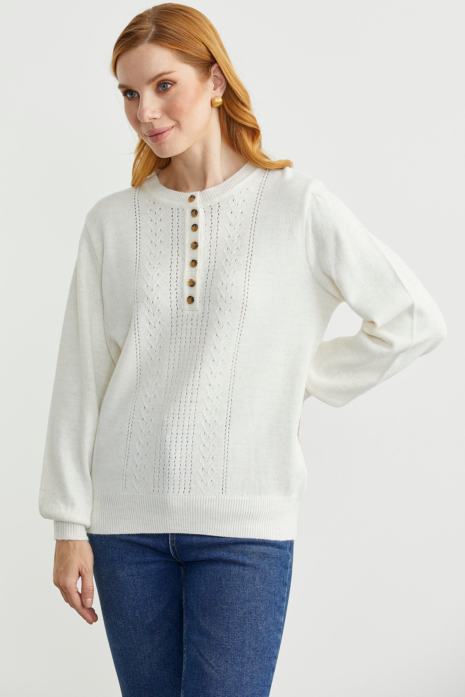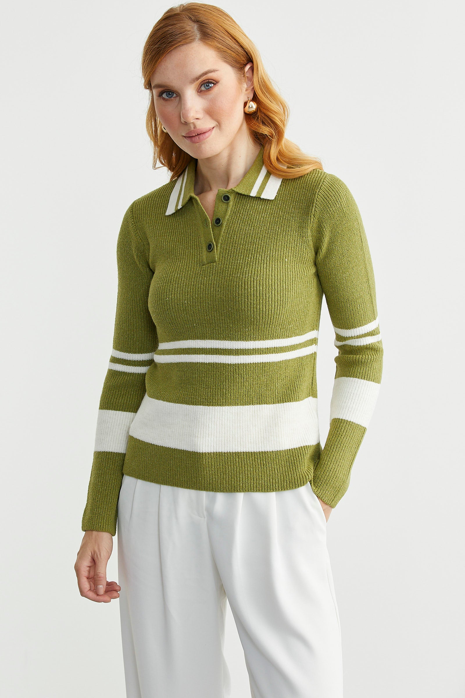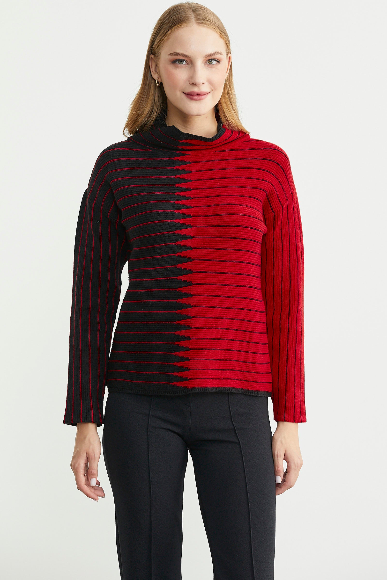 Ayrıca yarım balıkçı yaka kadın kazak tasarımları içinde yer alıp, son derece çarpıcı bir duruşu olan yaka ucu büzgü detaylı kazak da, sezonun trend ve favori ürünleri arasında! Bu ürünümüzde ayrıca desenler de, şık ve zarif duruşlarıyla göz dolduruyor. Renk seçenekleri arasında ise siyah, lacivert, bordo, pudra ve vizon yer alıyor.