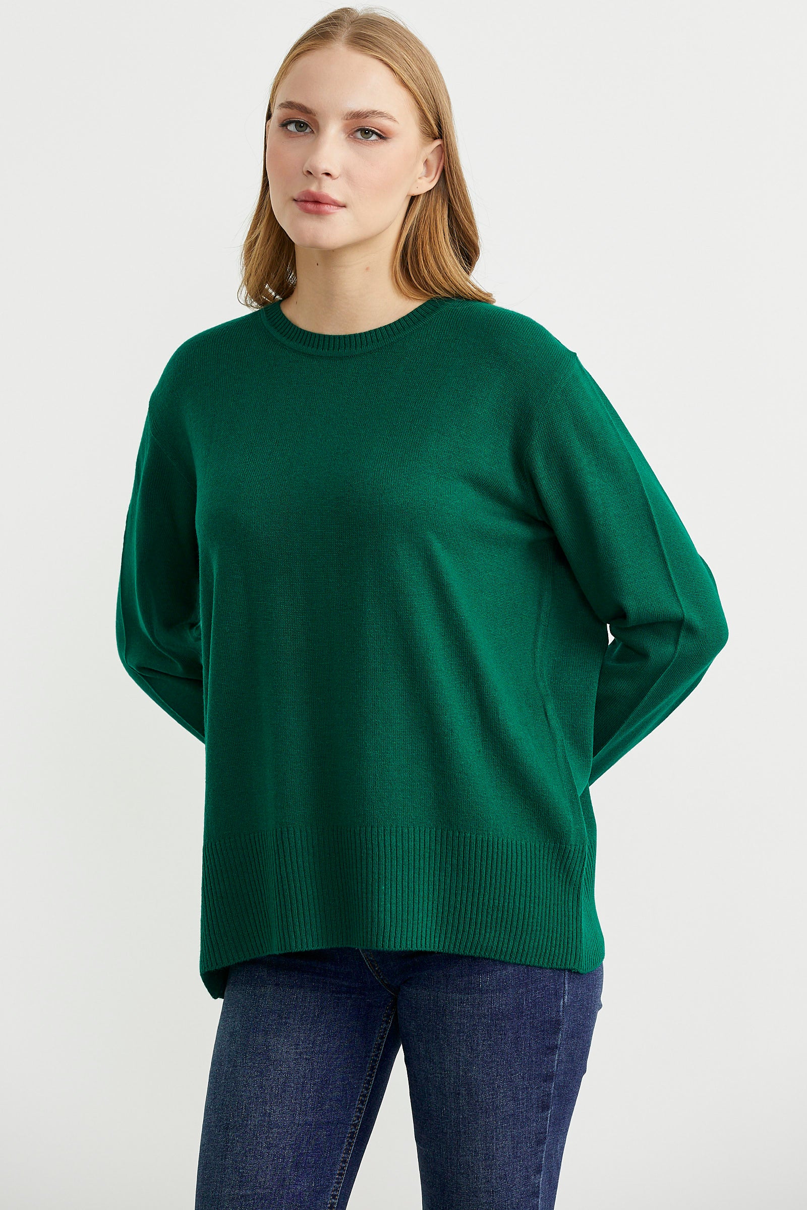 Bisiklet Yaka Yünlü Basic Triko Kazak - Yeşil