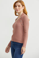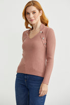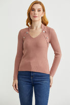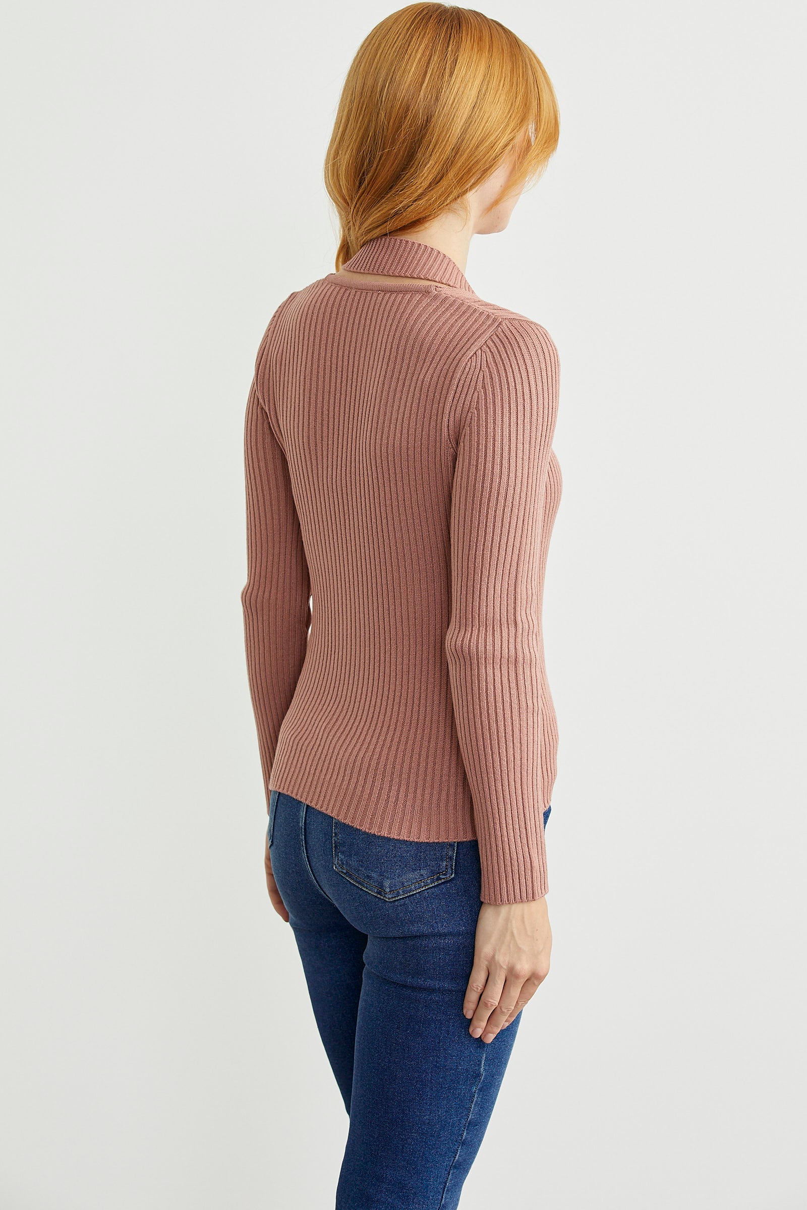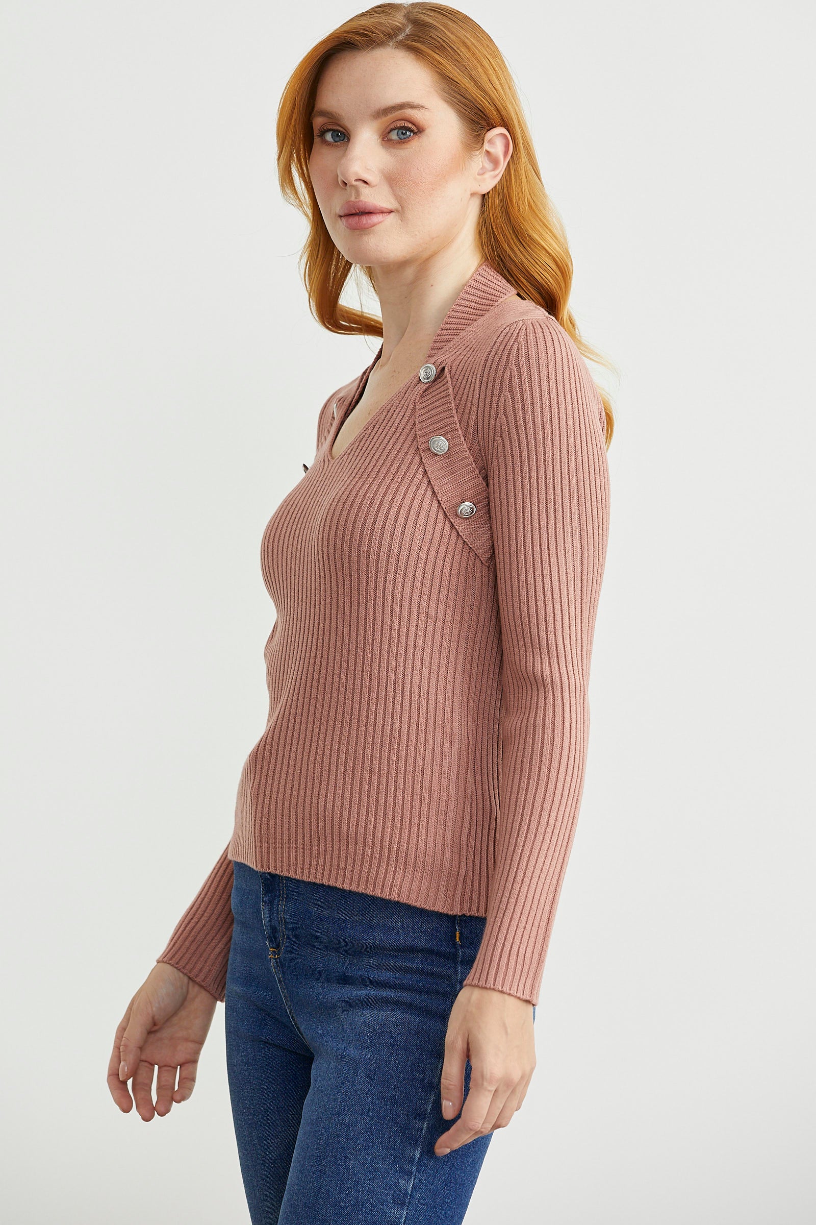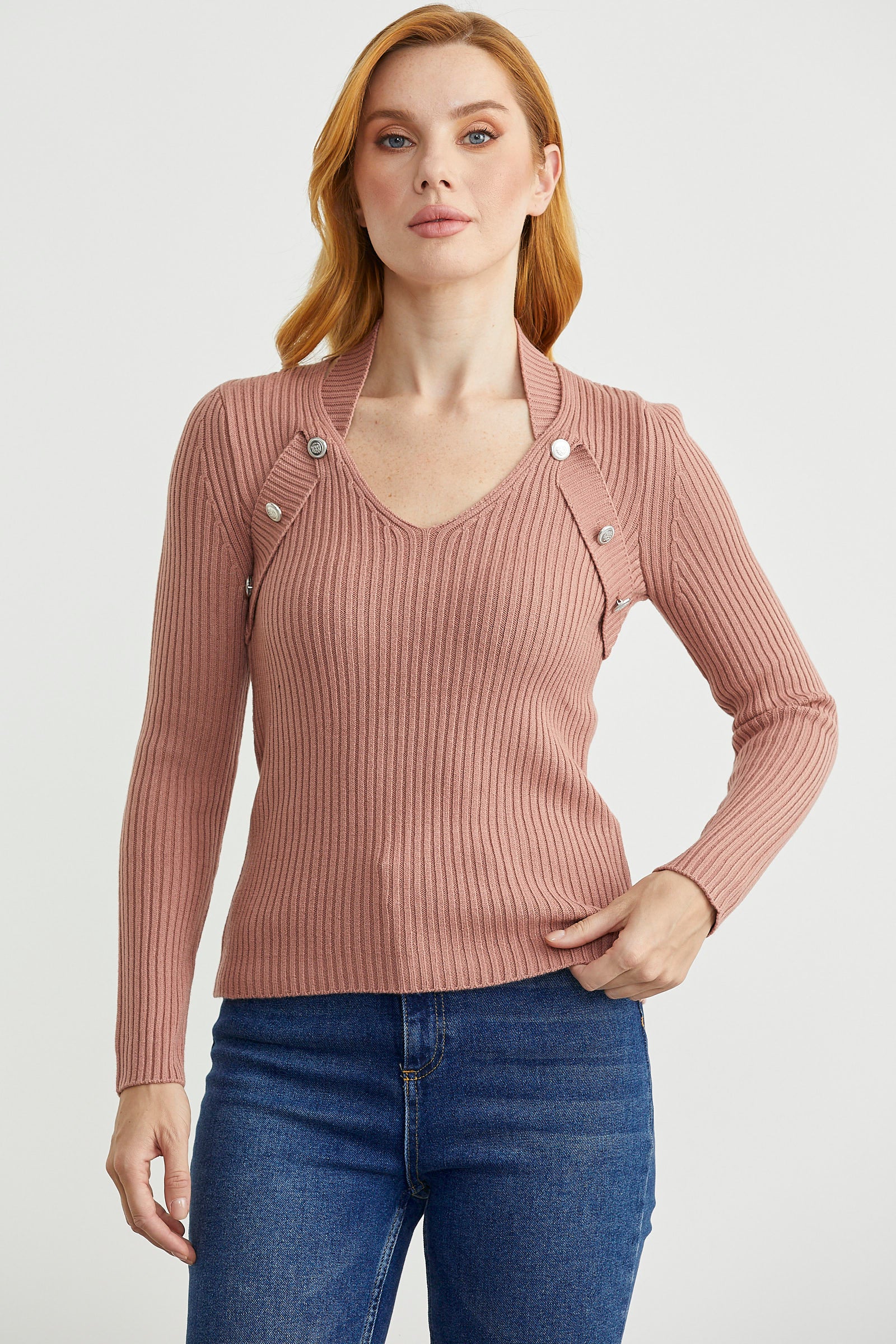 Boyundan Bantlı Fitilli Triko Kazak - Gül