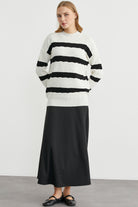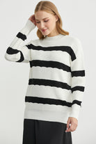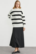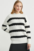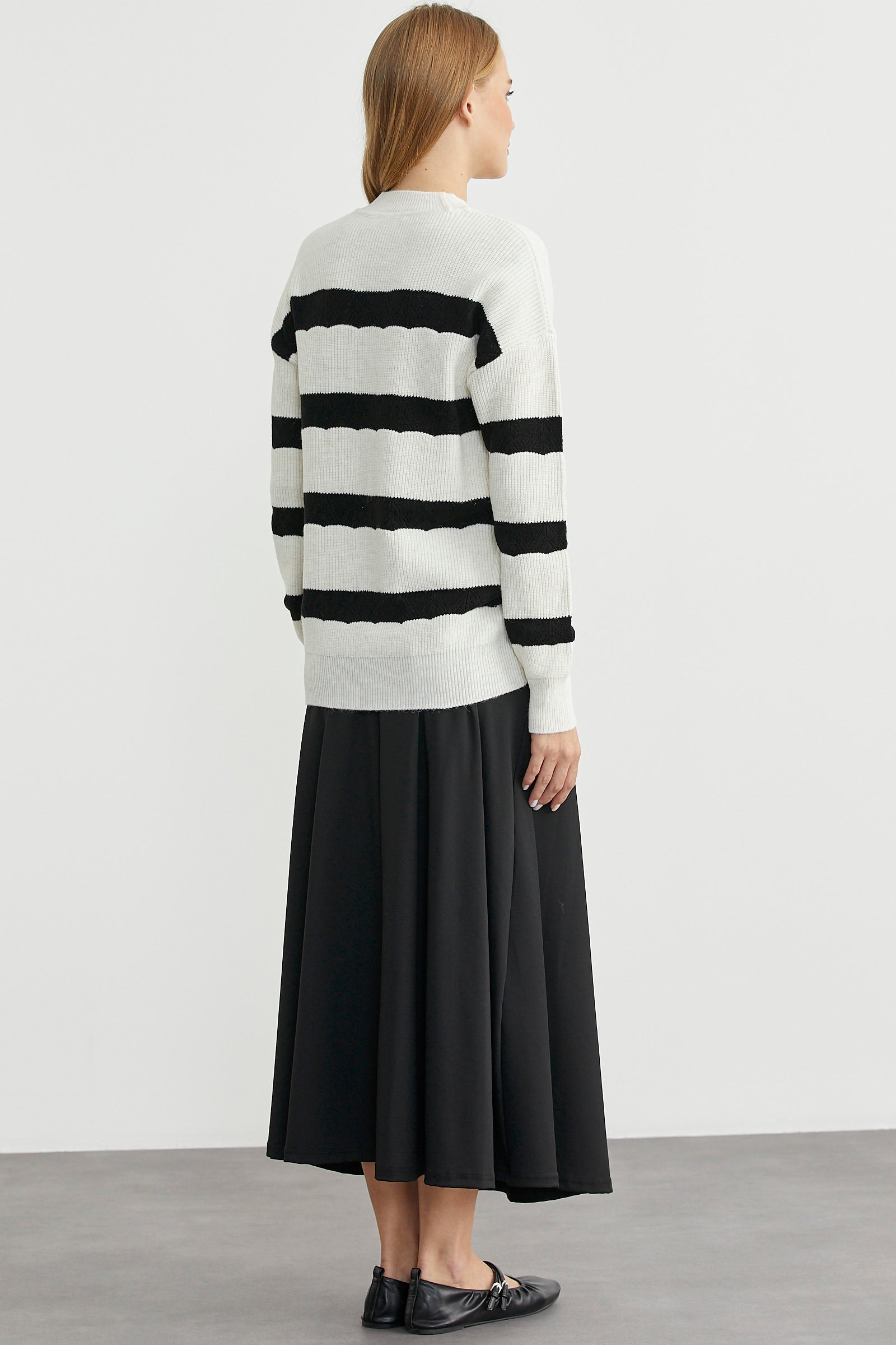 Dik Yaka Çizgili Triko Kazak - Kemik