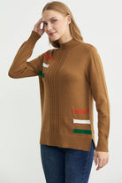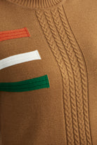 Dik Yaka Renk Detaylı Triko Kazak - Kamel