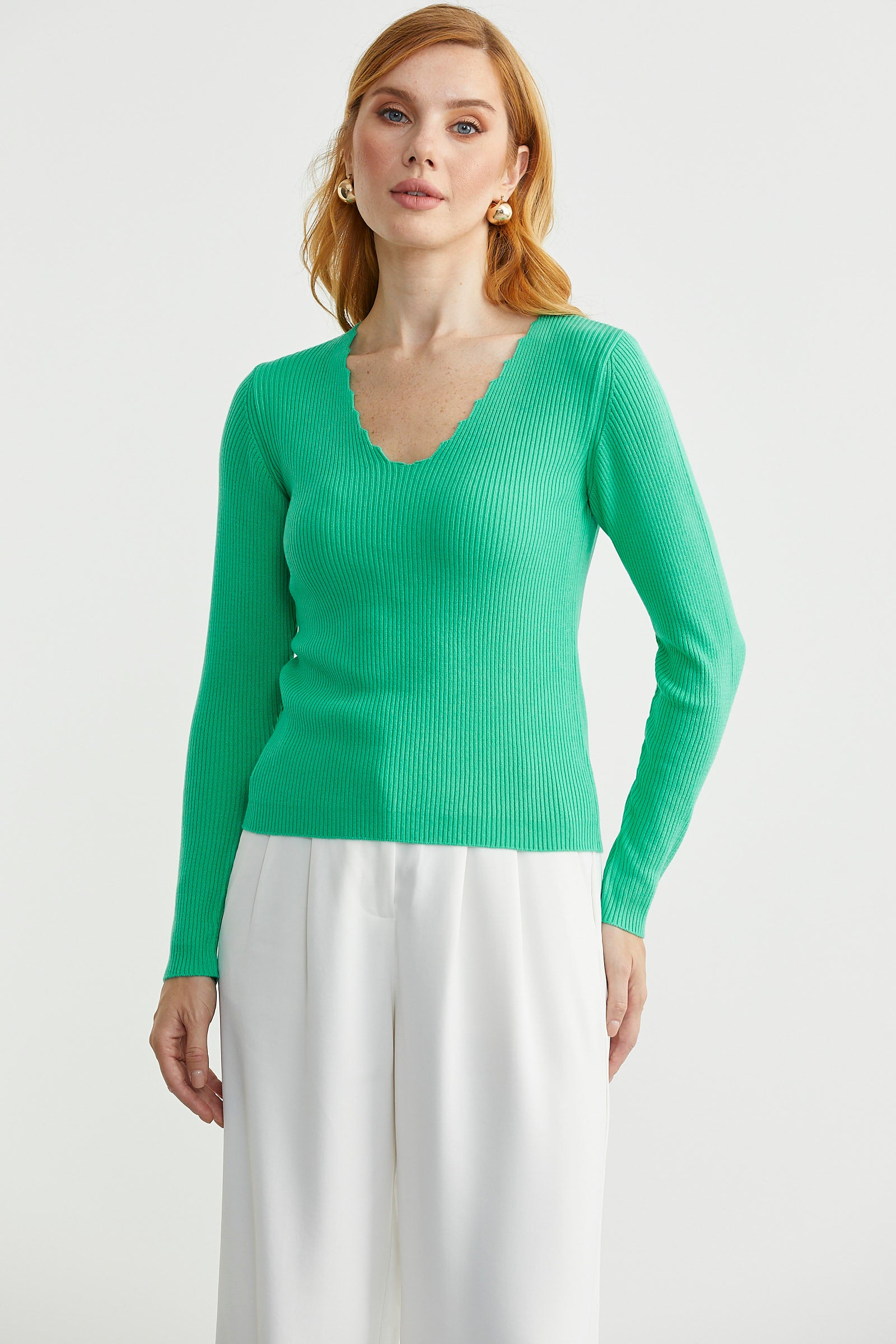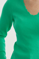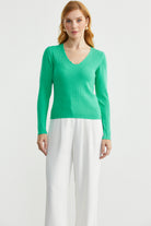 Fitilli Basic V Yaka Triko Kazak - Yeşil
