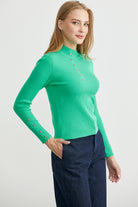 Fitilli Dik Yaka Basic Triko Kazak - Yeşil