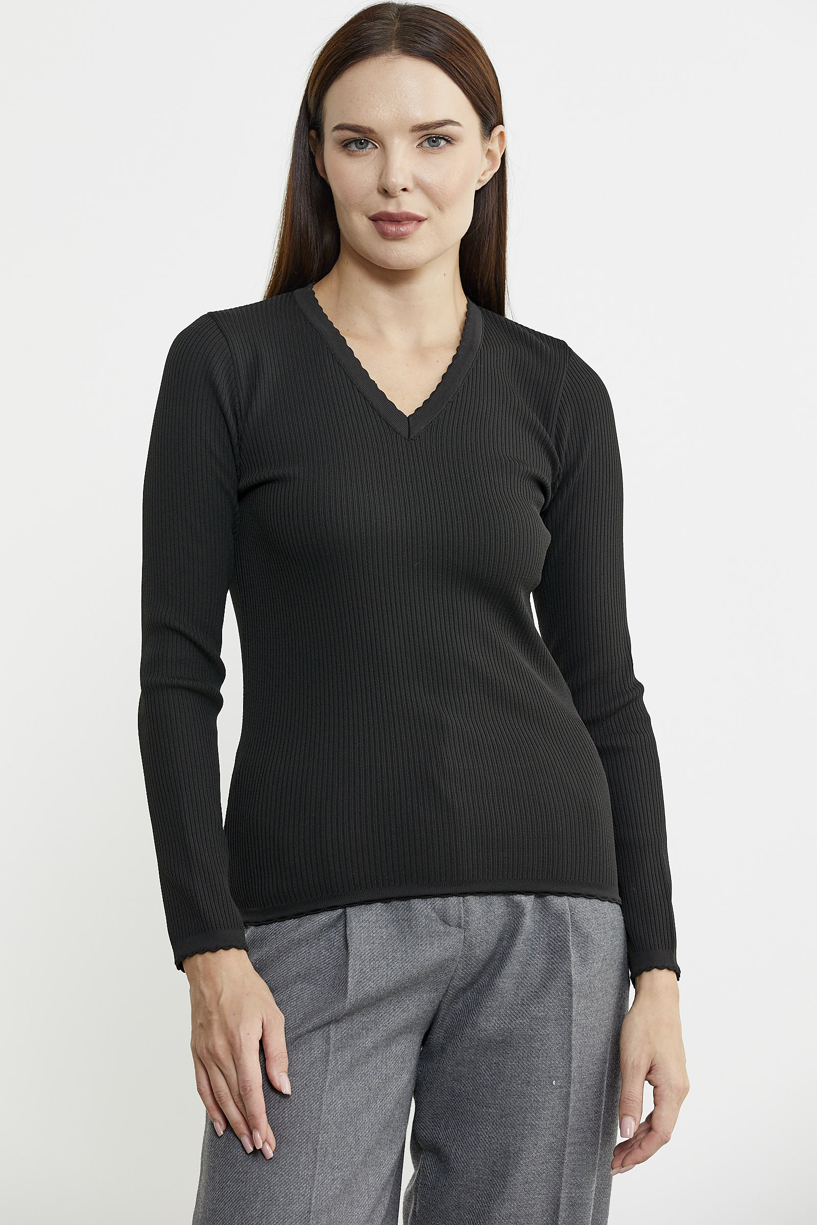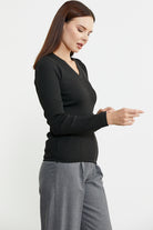 Fitilli V Yaka Basic Triko Kazak - Siyah